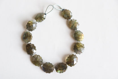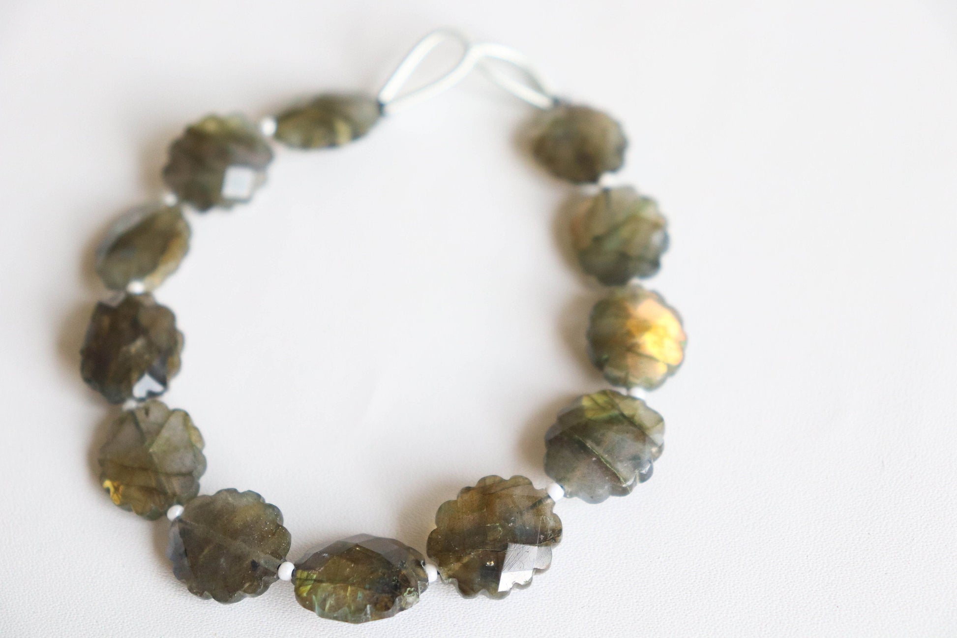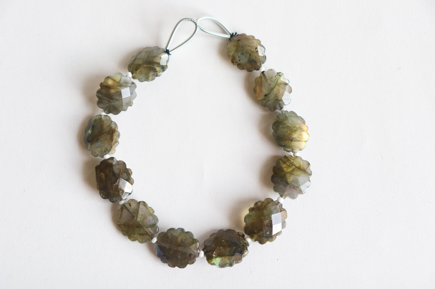 NATURAL LABRADORITE Gemstone faceted Flower Shape Beads