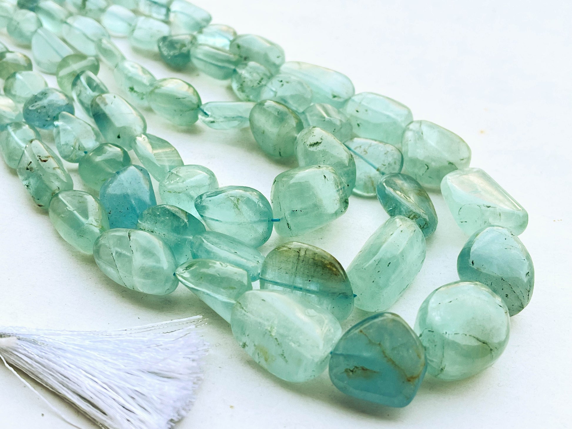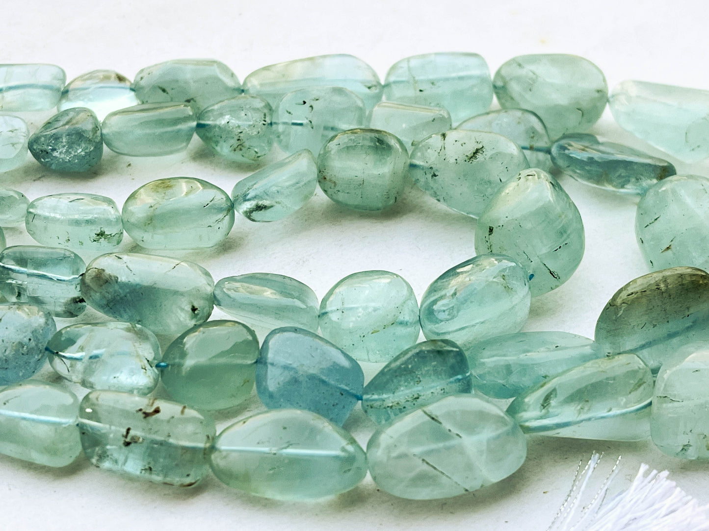 Aquamarine Smooth Nuggets Shape Beads Necklace