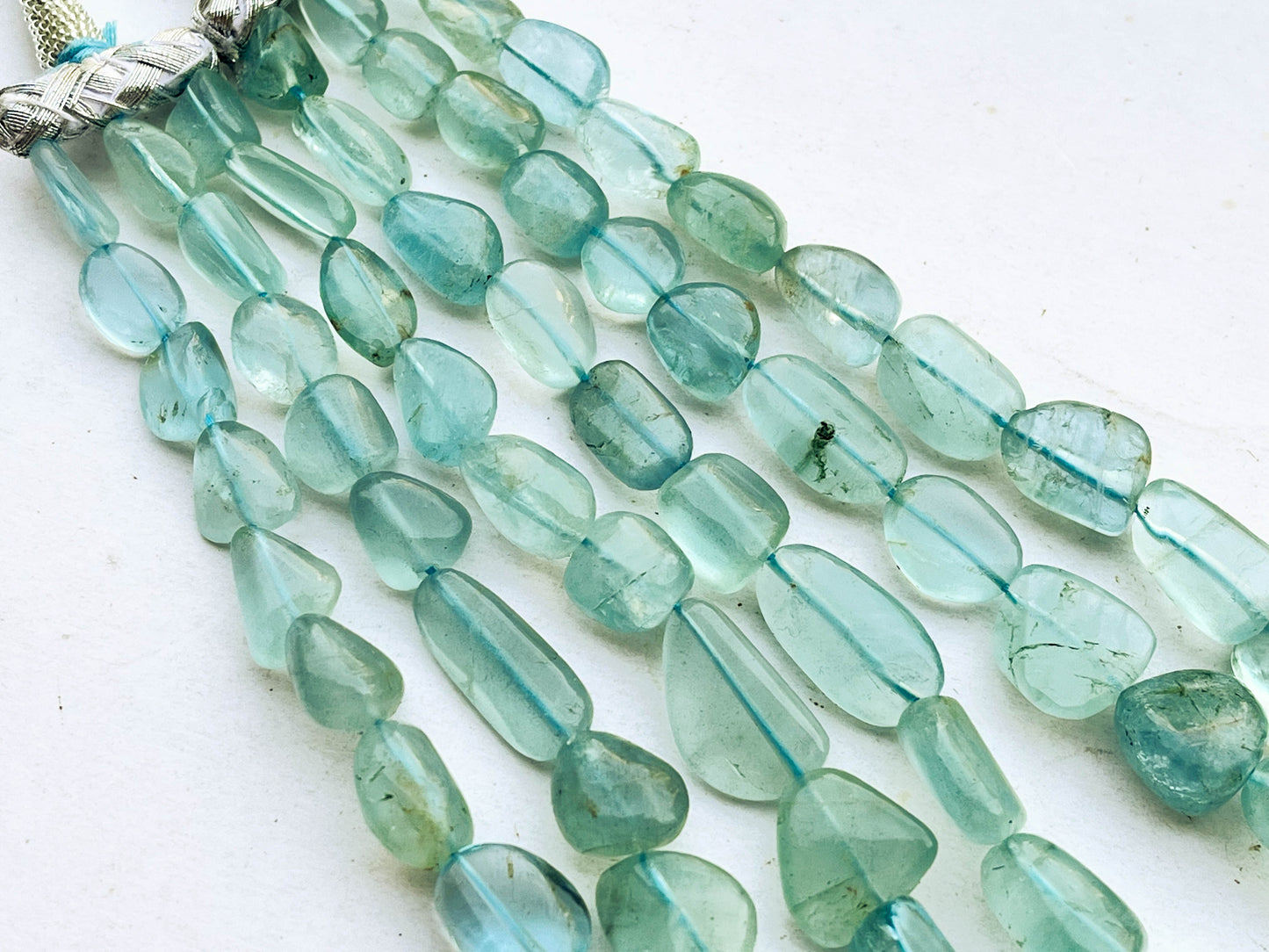 3 Layers Natural Aquamarine (No Heat, No Treat) Smooth Nuggets Shape Beads Necklace, Aquamarine Necklace, Aquamarine Beads, 18 Inch