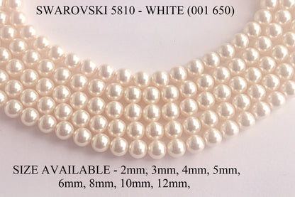 Crystal White (001 650) Genuine Swarovski 5810 Pearls Round Beads jewelry making