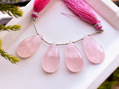 4 Pieces Rose Quartz Pear Shape Briolette, Rose Quartz Briolette, Rose Quartz Beads, Rose Quartz Drops, Rose Quartz teardrops, 16x30mm