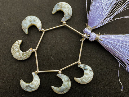 6 Pieces HOWLITE Carved Moon Shape Beads | 15x15mm | Natural Howlite Moon Shape Beads | Beadsforyourjewellery