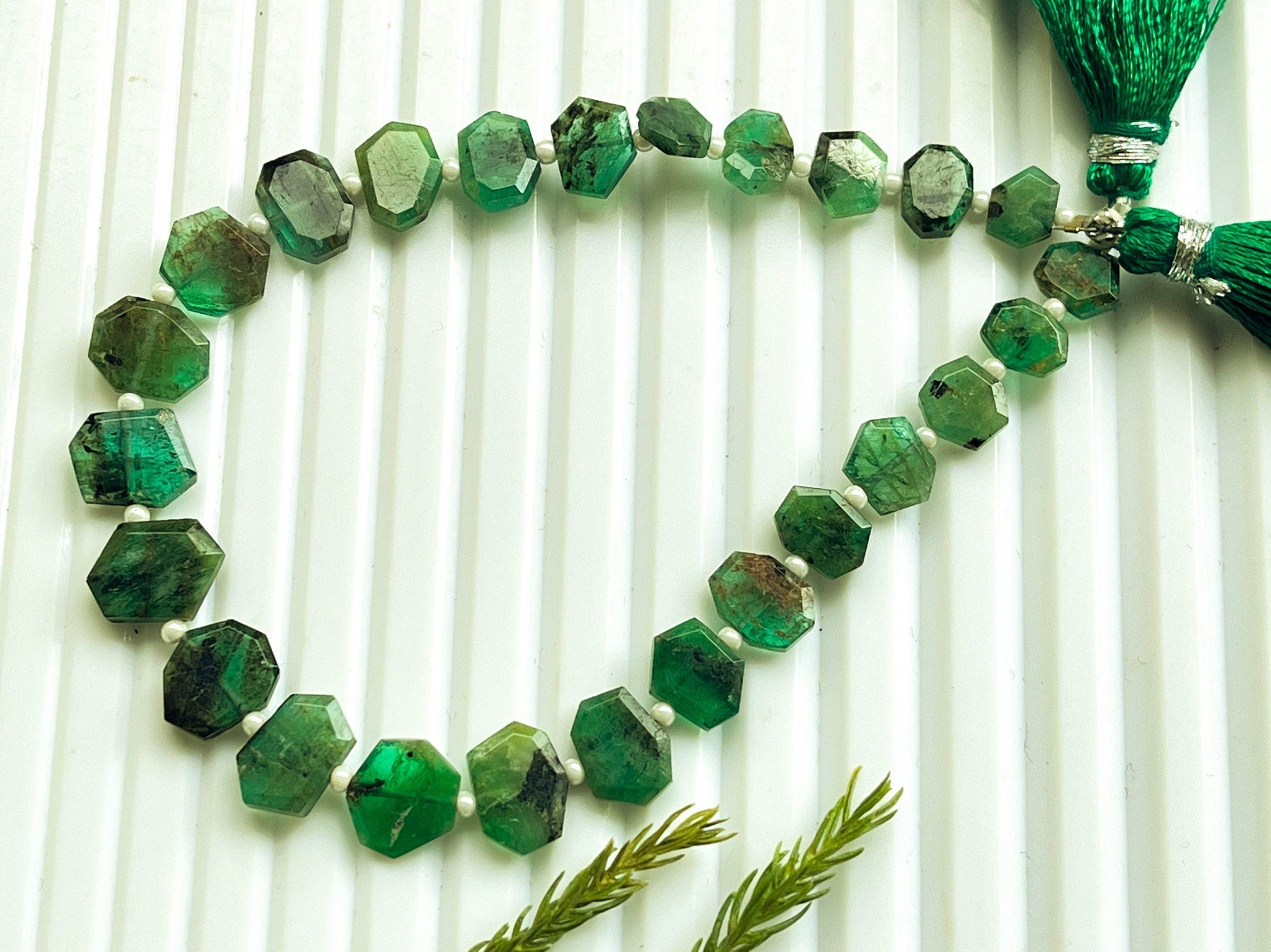 7.50 Inch Emerald Crown Cut Beads, Natural Zambian Emerald Gemstone, Emerald Beads, Emerald gemstone beads, 25 Pieces, 5x7mm to 8x10mm