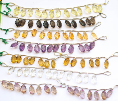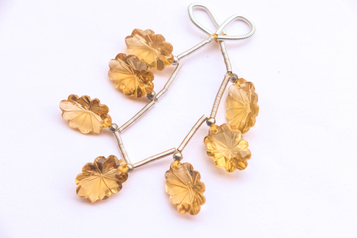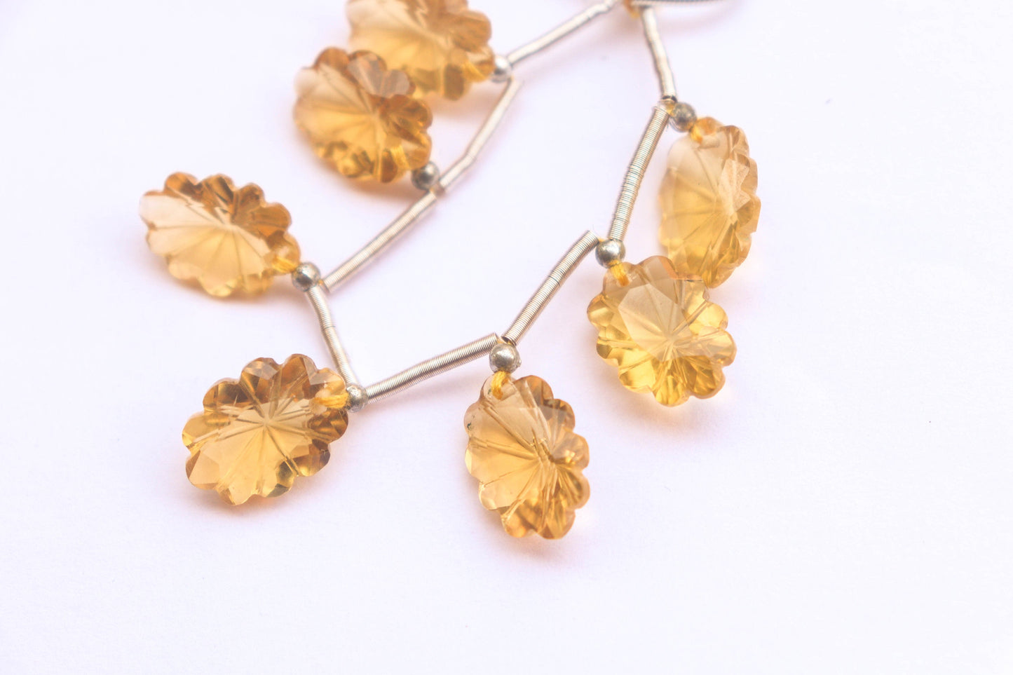 7 Pcs BEER QUARTZ Flower Cut carved beads | 10x15mm | Face Drill | High Quality Gemstone Beads for jewelry making | Beadsforyourjewellery