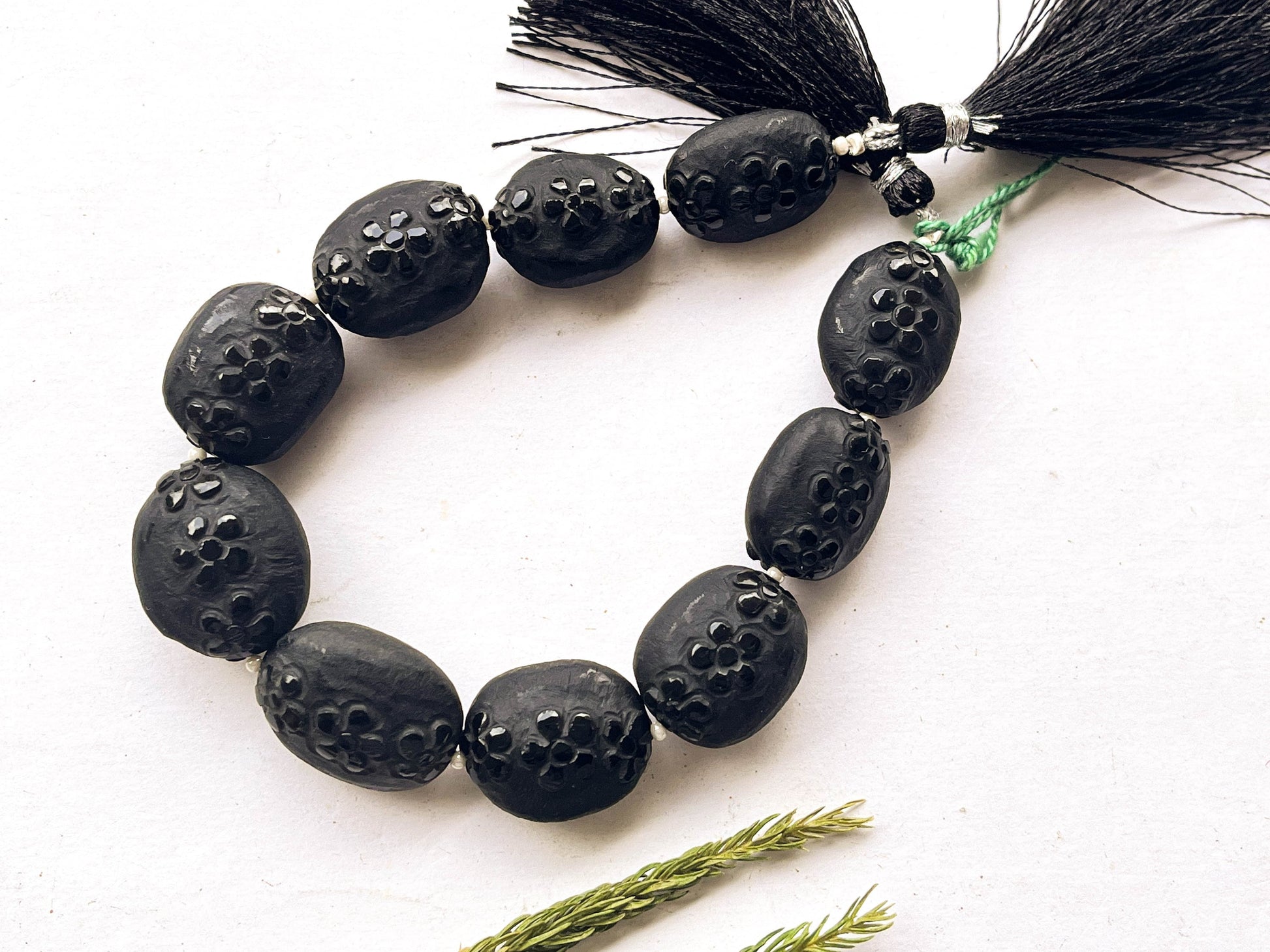 8 Inch Natural Black Onyx Carved Frosted Beads, Natural Black Onyx Gemstone, Black Onyx Beads, Black Onyx carved Beads, Black Onyx Beads