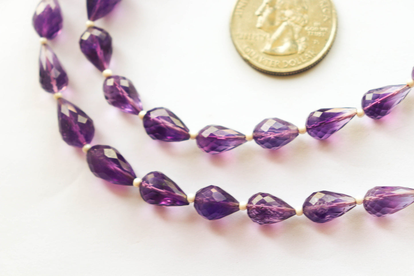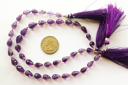 Amethyst Faceted Drops | 5x7mm to 8x12mm | 10 inch | 22 Pieces | Center Drill | Natural gemstone beads | Beadsforyourjewellery