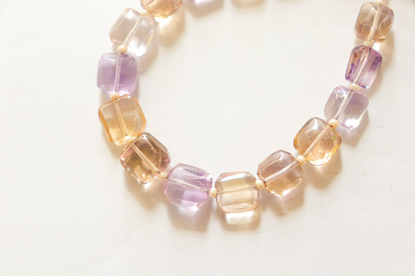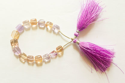 Ametrine Cushion Shape Beads | 8x8mm | 14 Pieces | 6 Inch | Center Drill | Natural Ametrine Gemstone | Beadsforyourjewellery