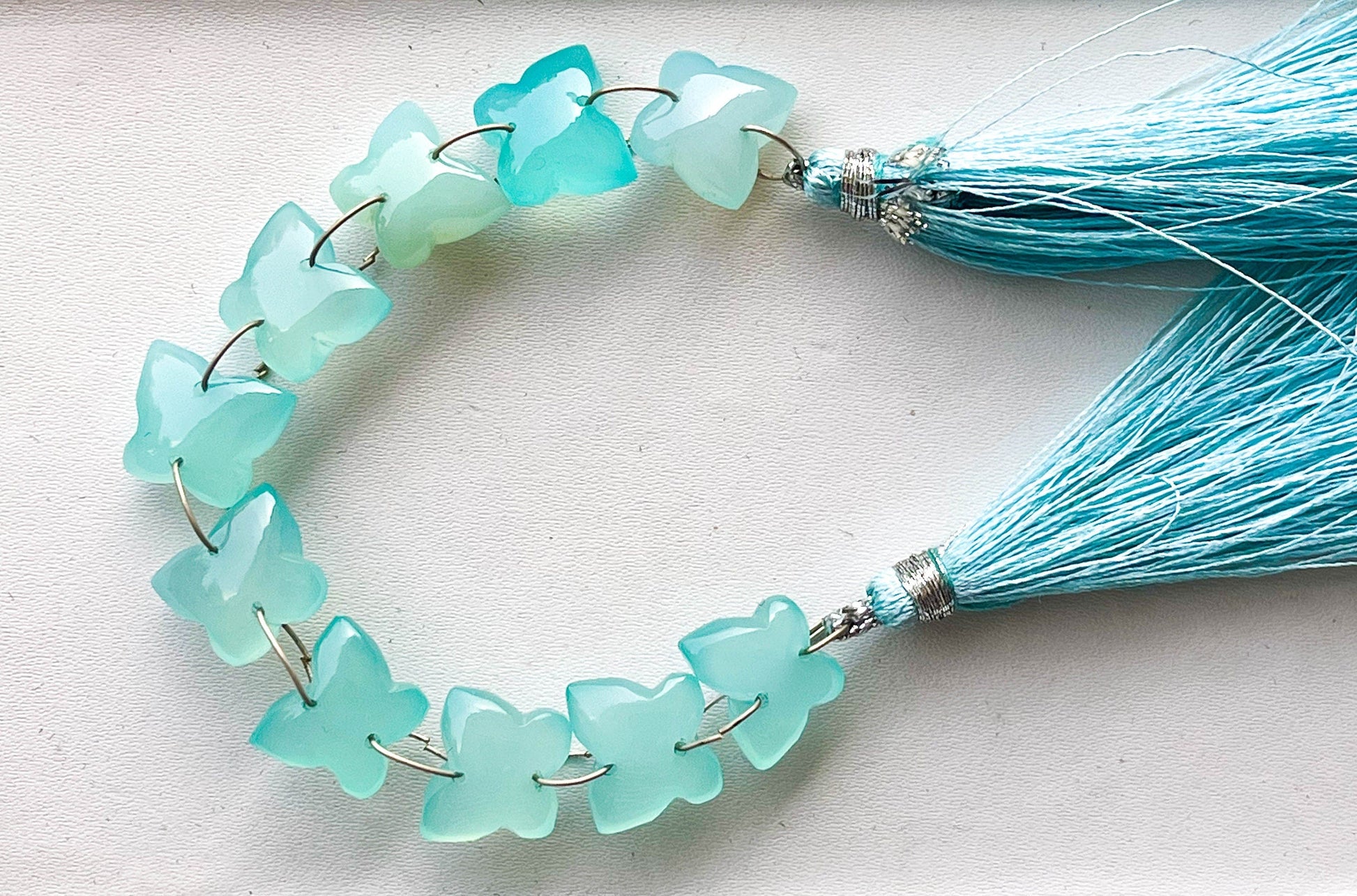 Aqua Blue Onyx Smooth Butterfly Shape Double Drill Beads, Rare Gemstone Design for Jewelry Making, 10x12mm, 10 Pieces String
