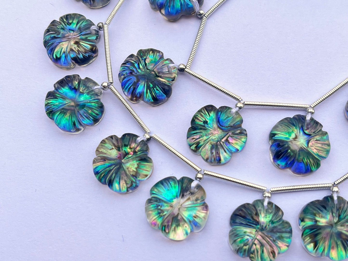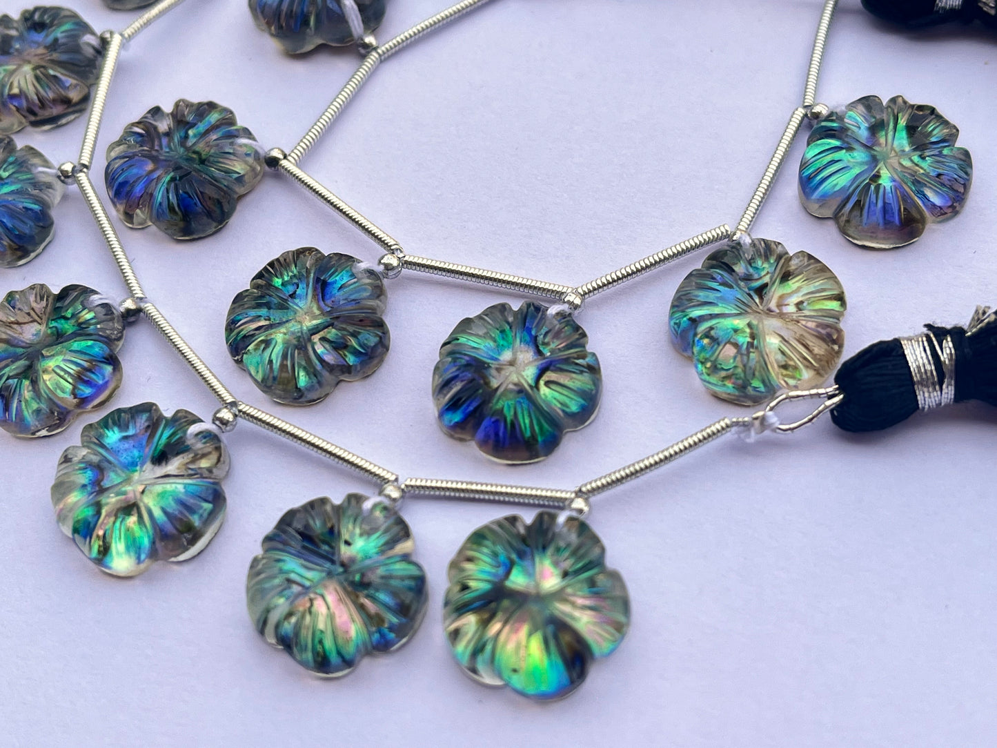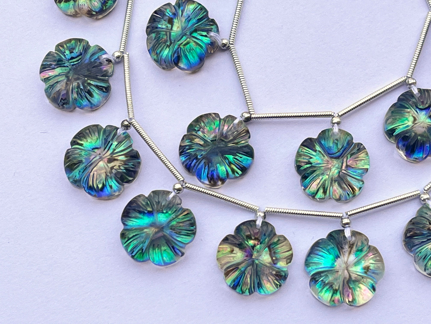 Beautiful! Natural Abalone Shell and Crystal Doublet flower carving beads, Hand carved gemstone beads for jewelry making, 15x15mm, 10 Pieces