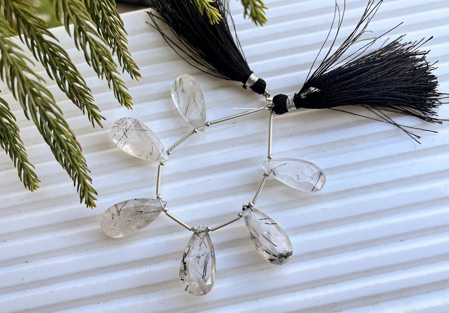 Black Rutile Faceted Pear Briolette | 10x20mm | 6 Pieces | Natural Gemstone | Beadsforyourjewelry