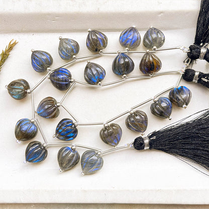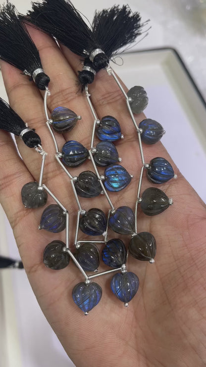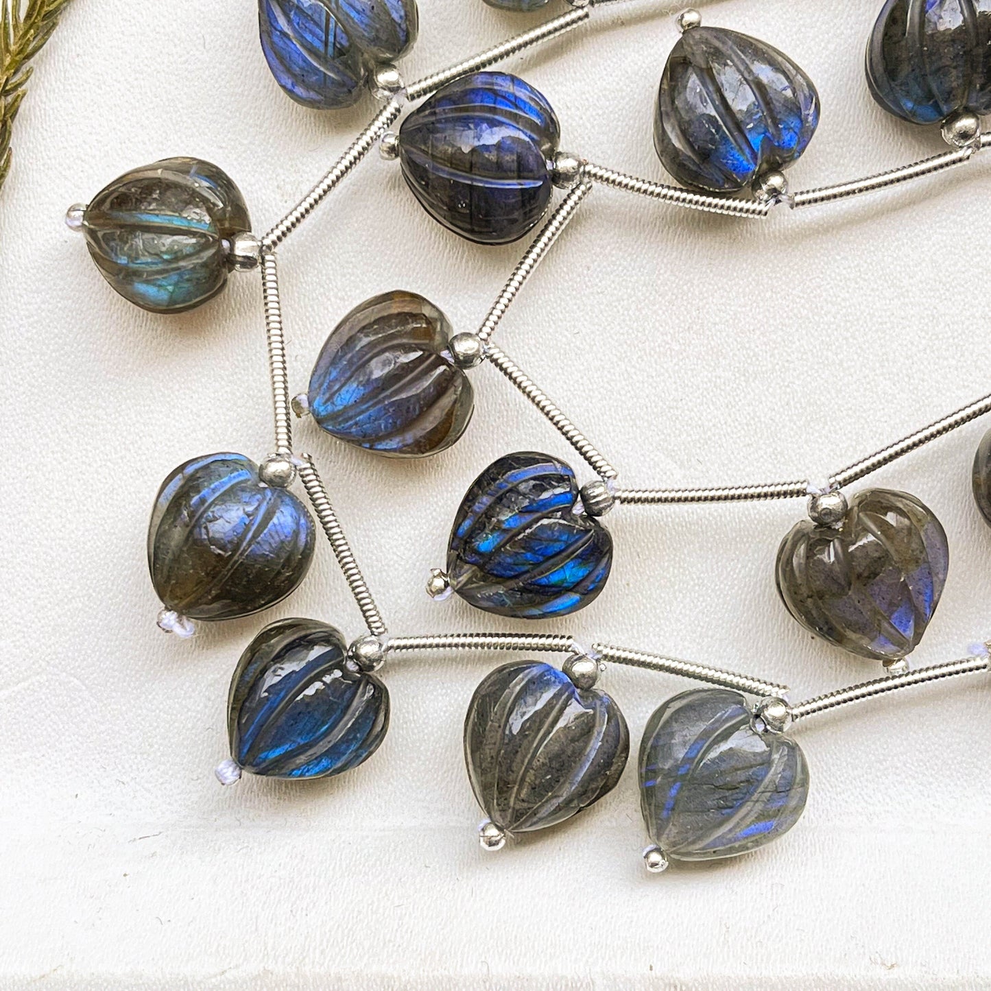 Labradorite Carved Heart Shape Beads | 10x11mm | 10 Pieces | Natural Gemstone Beads for Jewelry Making | Beadsforyourjewellery