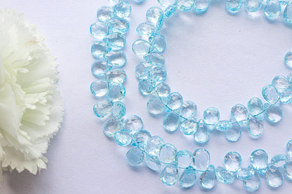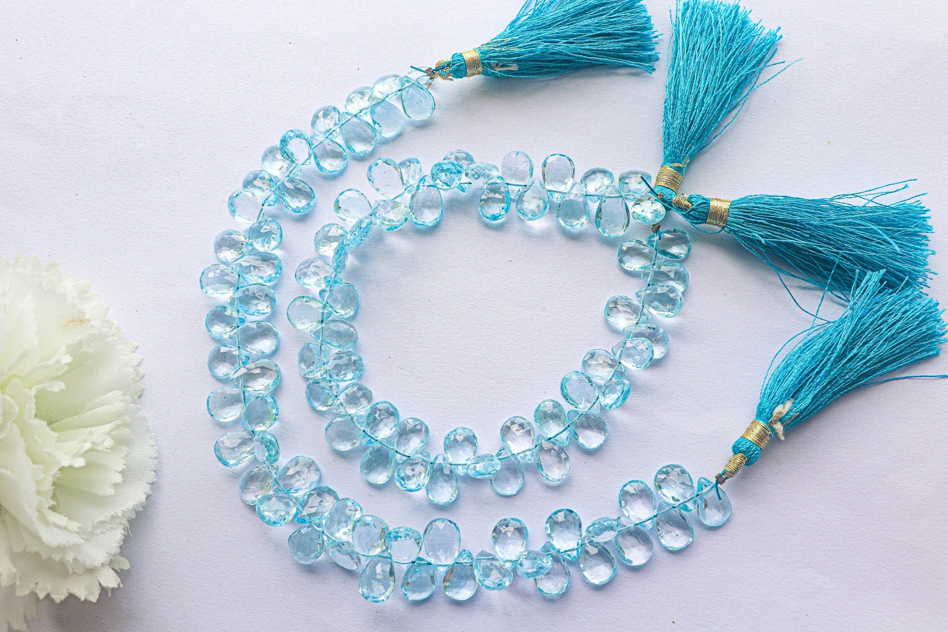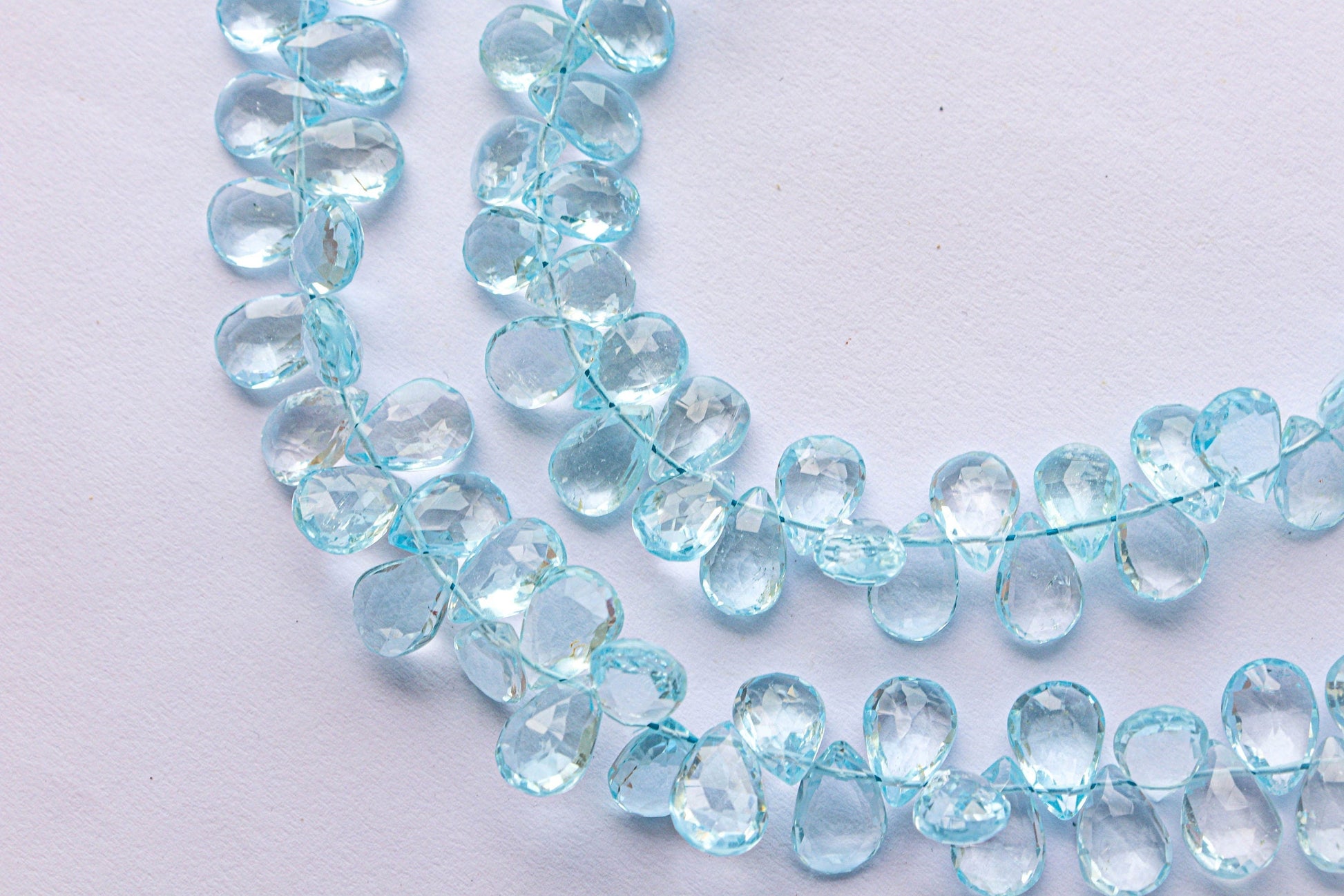 Blue Topaz Pear Briolette Faceted | 7x10mm | 51 Pieces Full Strand | 9 inch | Natural Blue Topaz gemstone Side drill Briolette for Jewelry