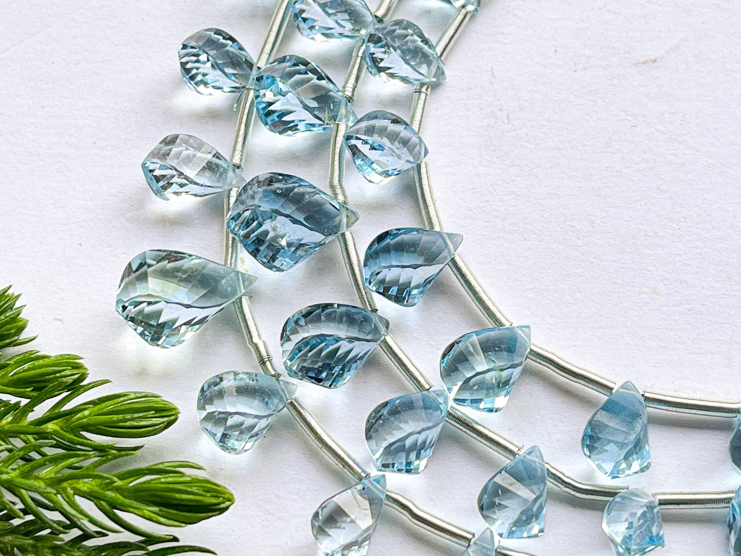 Blue Topaz Twisted Drops Faceted, Natural Blue Topaz Gemstone Drops, Blue Topaz Teardrops, Blue Topaz Drops, 5x9mm to 9x12mm