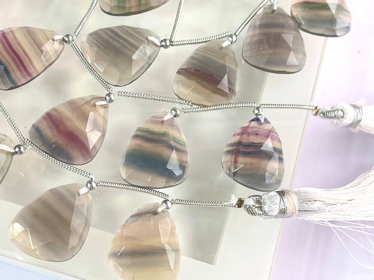 Rainbow Fluorite Uneven Shape Rose Cut Briolette Beads