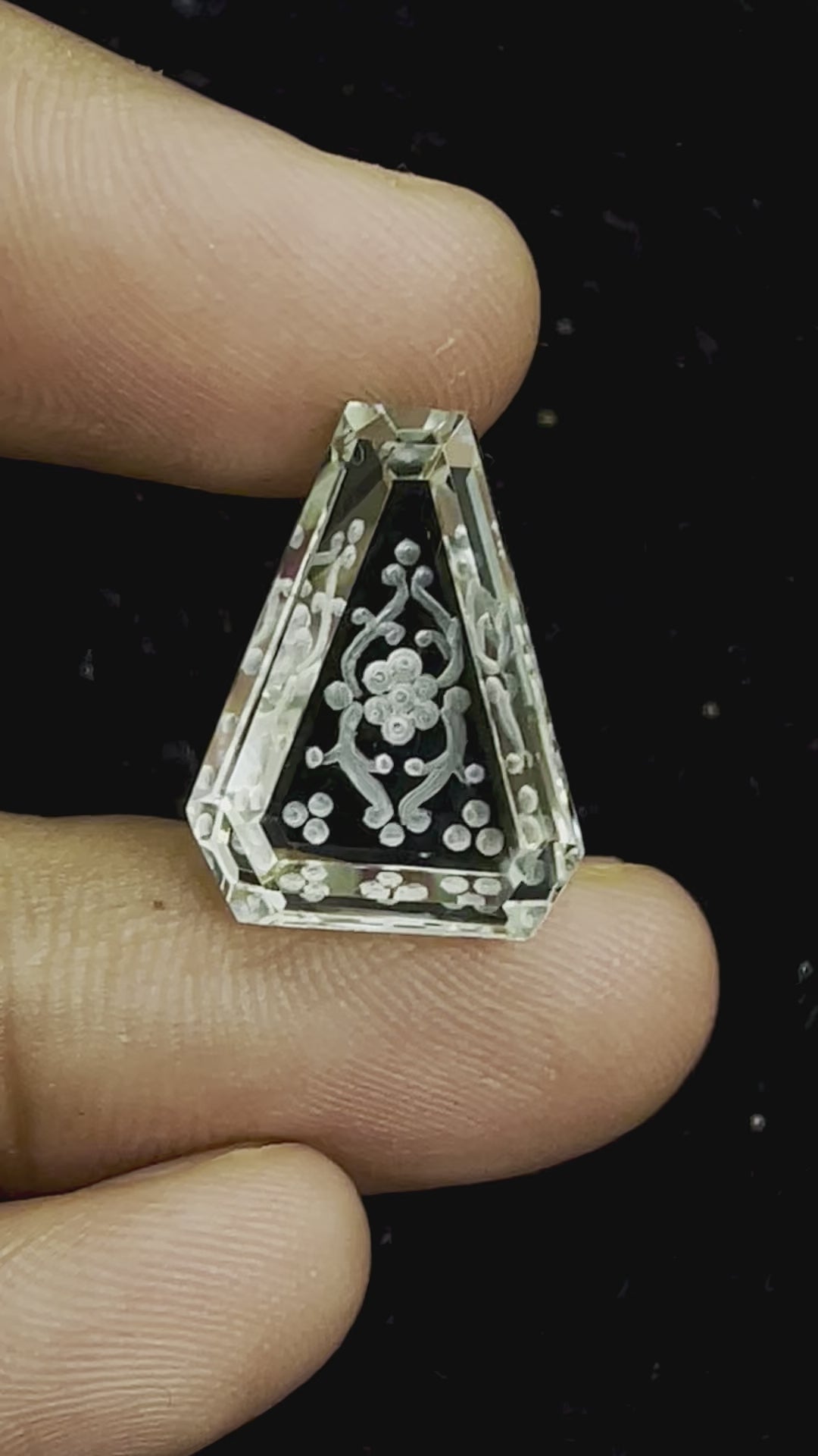 Green Amethyst Fabulous Handcarved Fantasy cut reverse carving, Green Amethyst Carving, 12.60 Carats, 8.25x13.5x7mm, Green Amethyst Gemstone