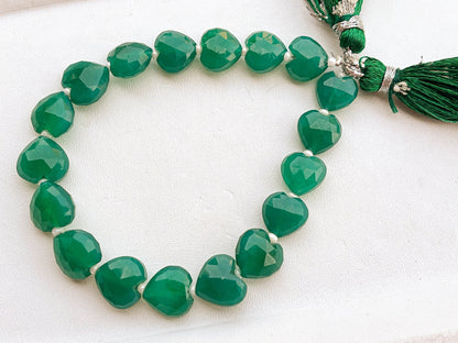 18 Pieces Green Onyx Heart Shape Beads, Natural Green Onyx Gemstone, Green Onyx Beads, Green Onyx Heart Carving, Heart Beads, 9x10mm