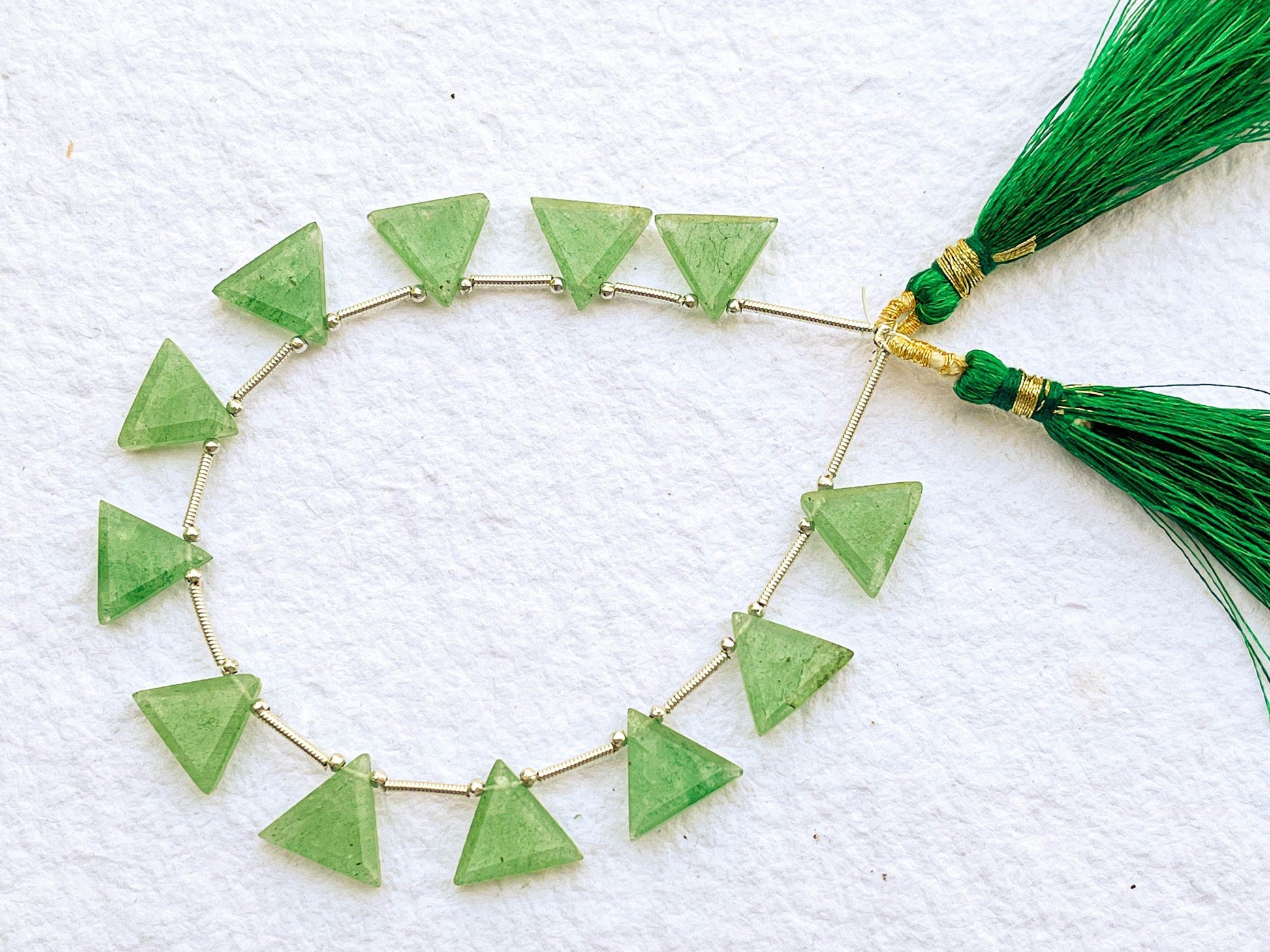 Green Aventurine Triangle Shape Faceted Beads, 12x12mm, 12 Pieces, Natural Strawberry Quartz, Beadsforyourjewellery