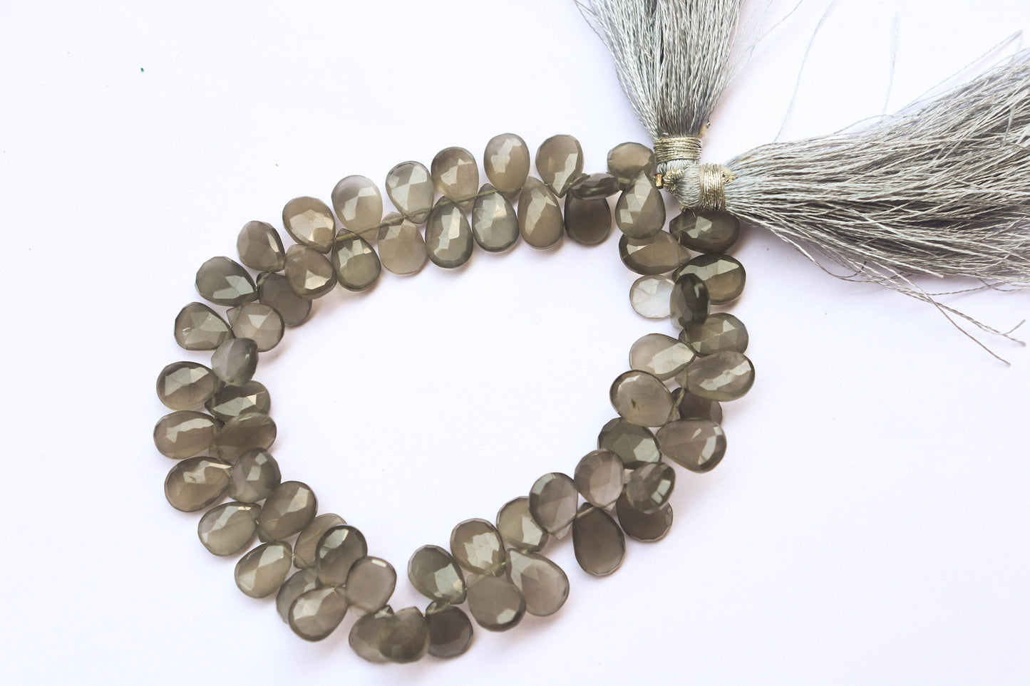 Grey Moonstone Pear Briolette Faceted | 7x10mm | 8 inch strand | 60 Pieces | Side Drill | Moonstone Sheen | For Jewelry making