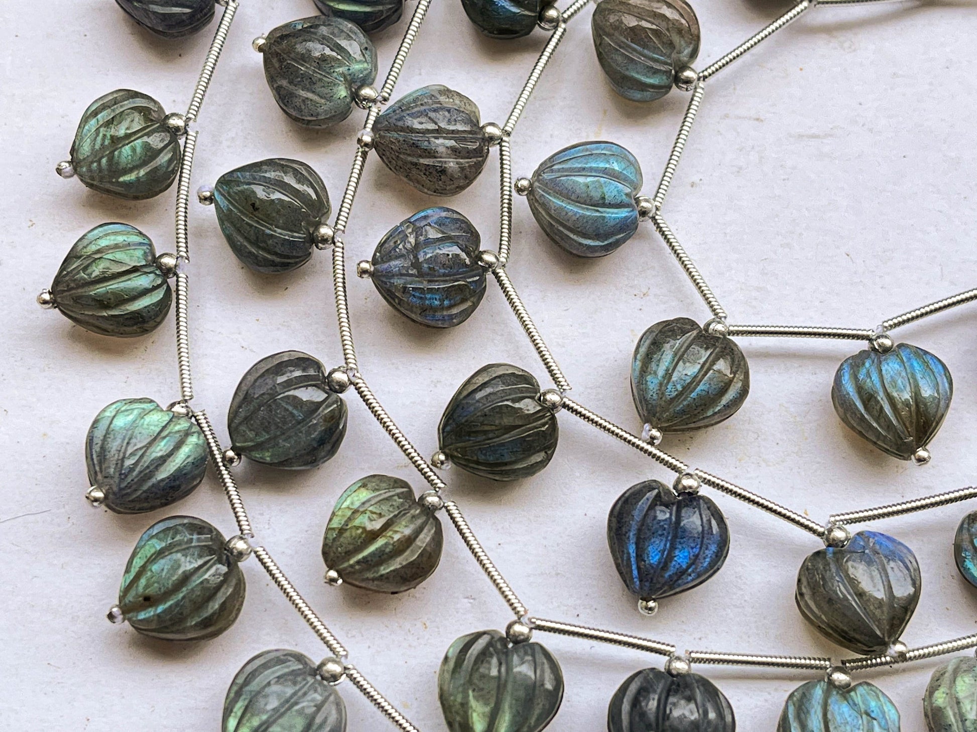 Labradorite Carved Heart Shape Beads | 10x11mm | 10 Pieces | Natural Gemstone Beads for Jewelry Making | Beadsforyourjewellery