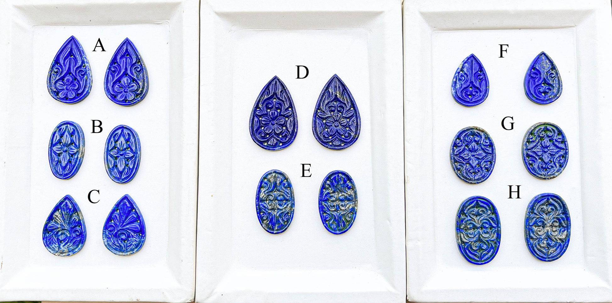 Lapis Lazuli Window Carving Pairs, Lapis Lazuli Gemstone, Lapis Lazuli Carving for Jewelry making