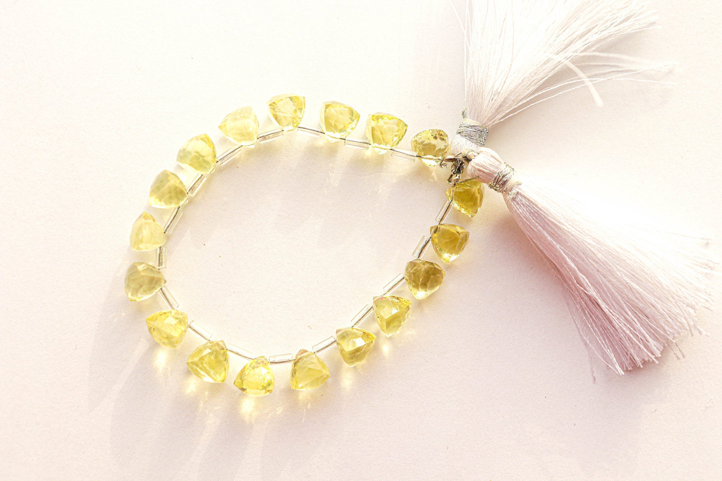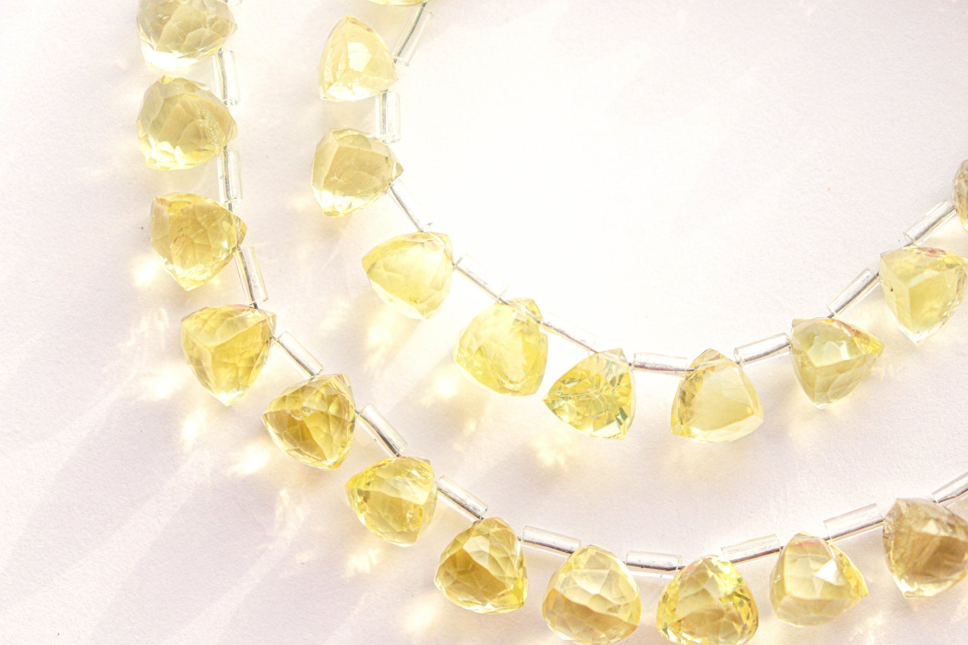 Lemon Quartz 3D Trillion Shape Beads | Natural Gemstone Beads for Jewelry Making | Beadsforyourjewellery