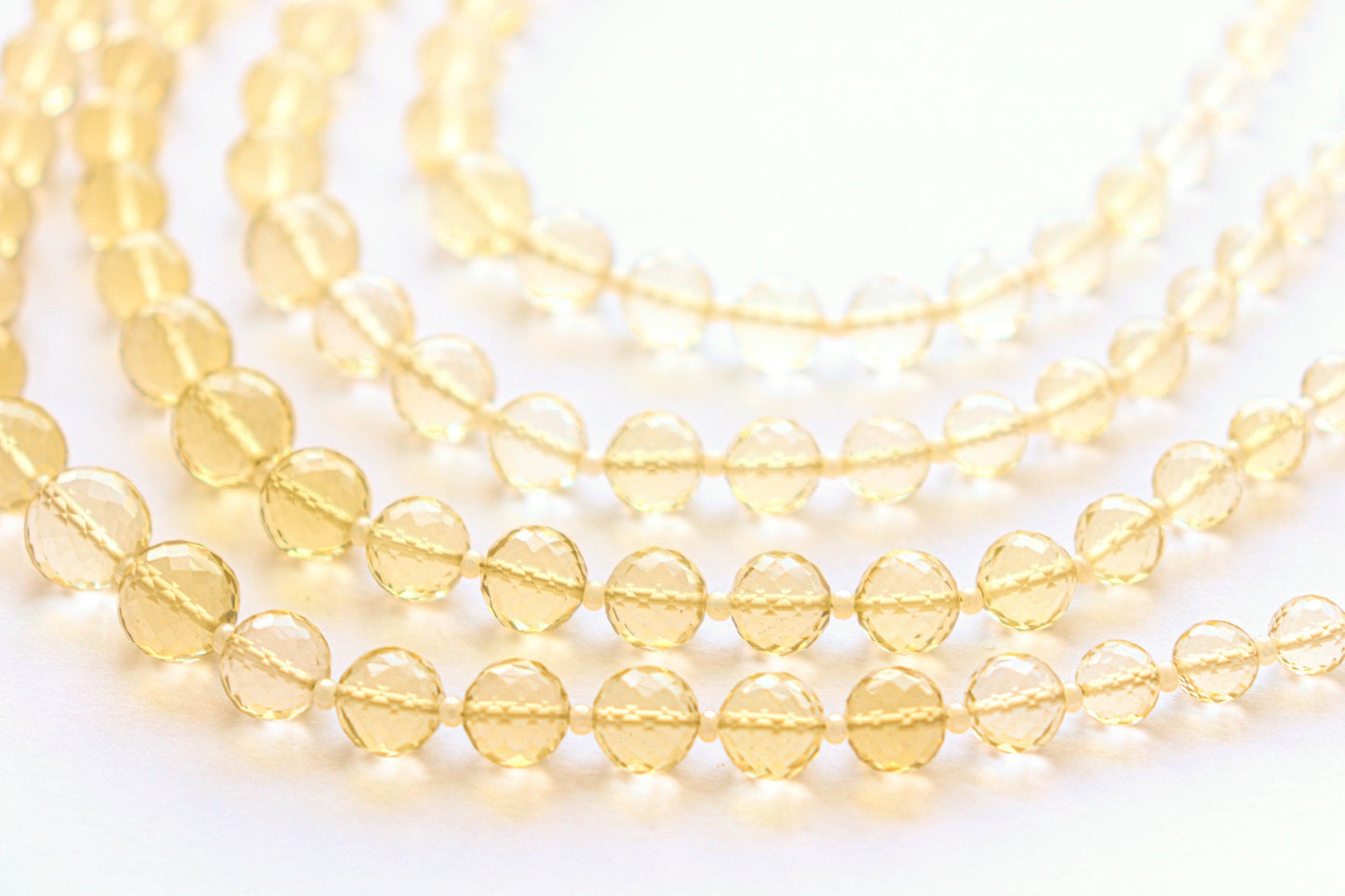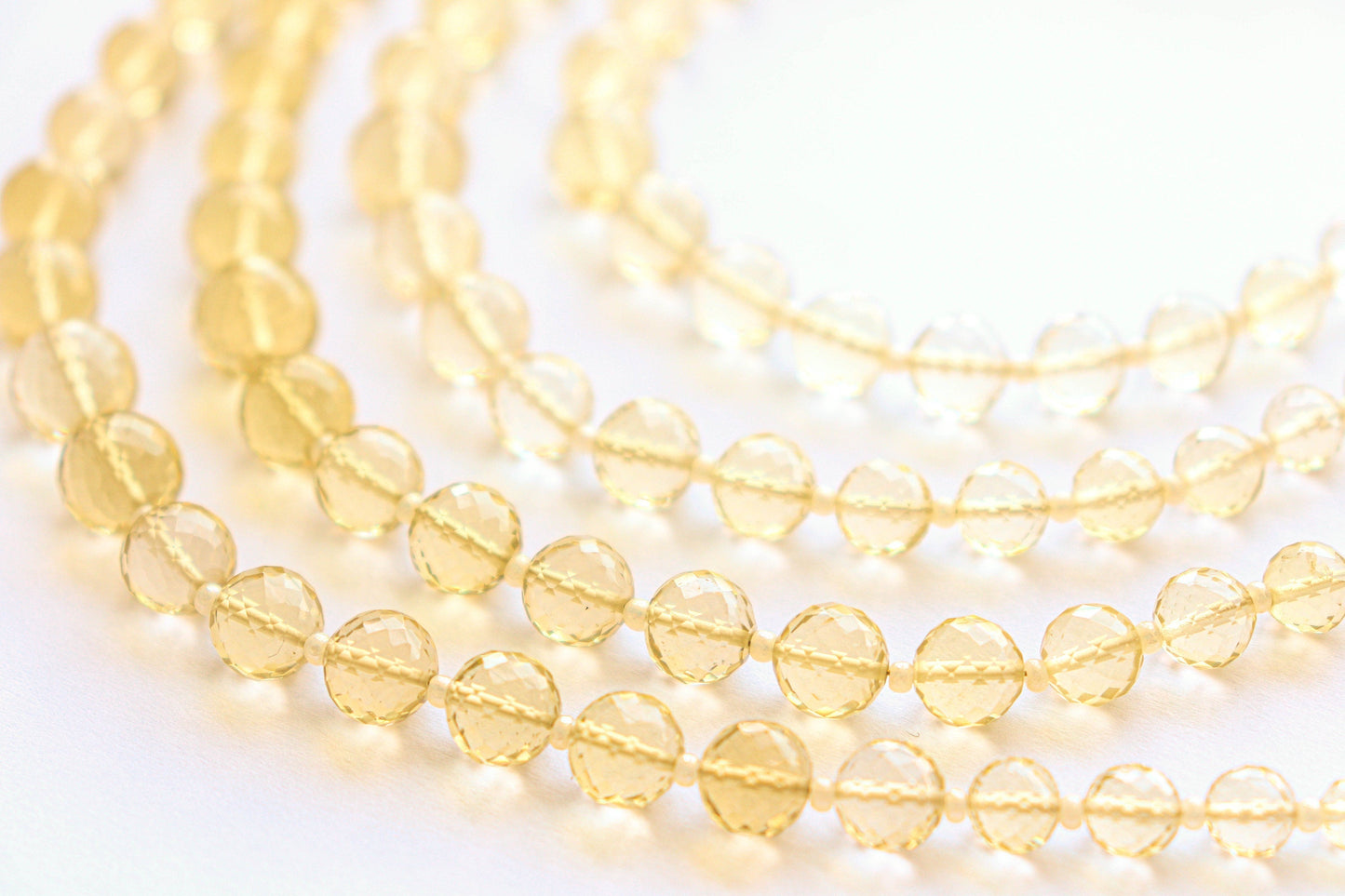 Lemon Quartz Faceted Balls | 4 to 9mm | 26 Pieces | Center drill | 8 inch Strand | Natural Gemstone Bead for jewelry making