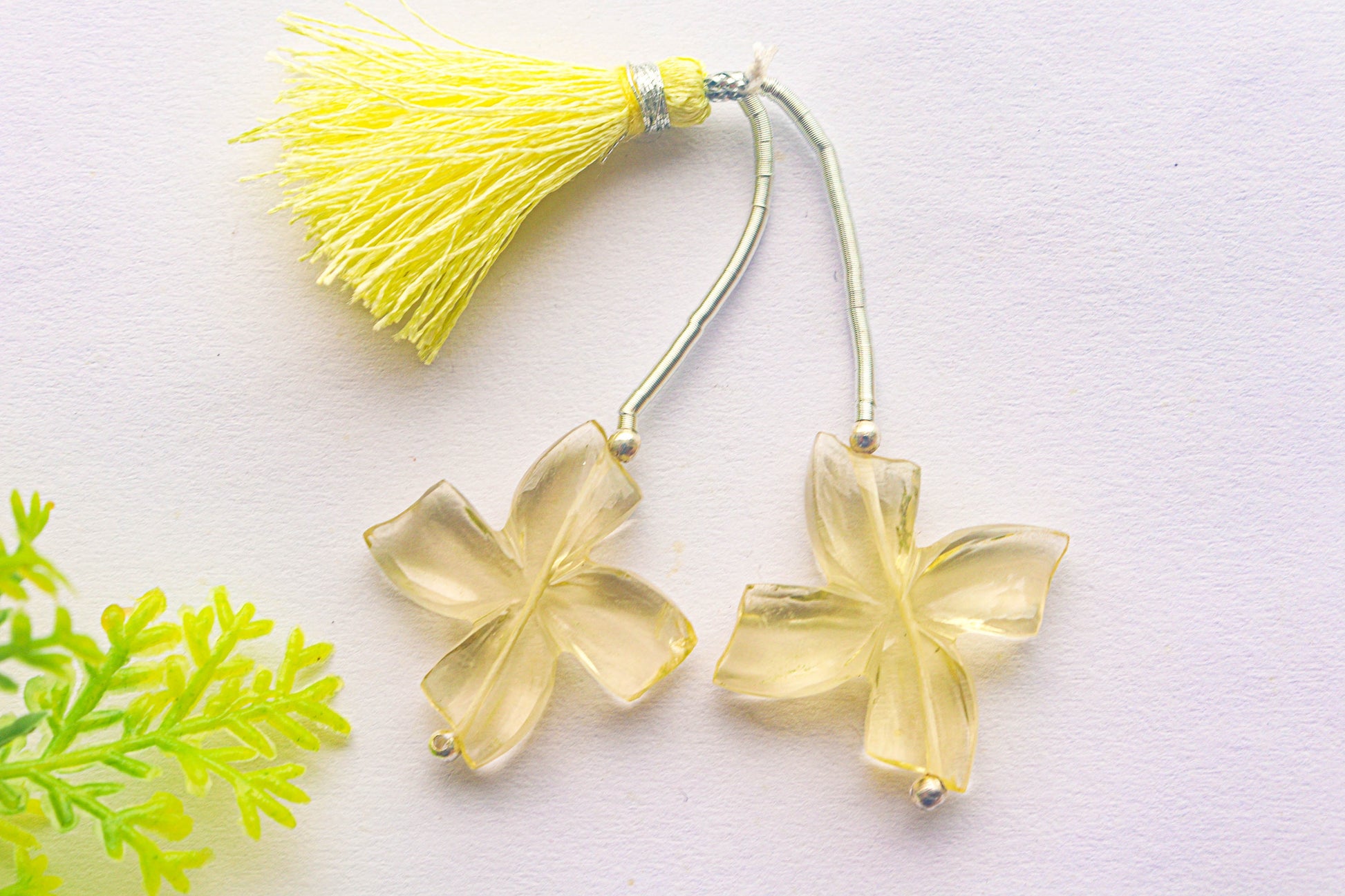 Lemon Quartz Flower Carving Beads | Center Drill | 20x20mm | 2 Pieces | Natural Lemon Quartz Gemstone | Beadsforyourjewellery
