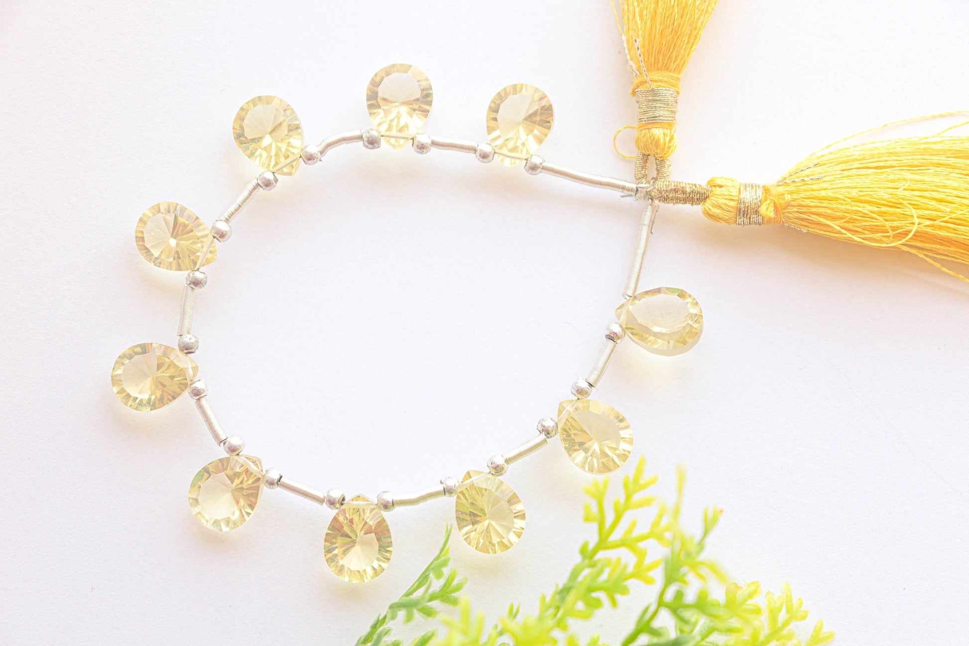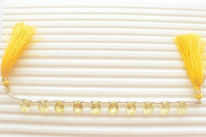 Lemon Quartz Pear Shape Concave Cut Beads | 8x10mm | 5 inch | Side Drill | Natural Gemstone for Jewelry | Beadsforyourjewellery