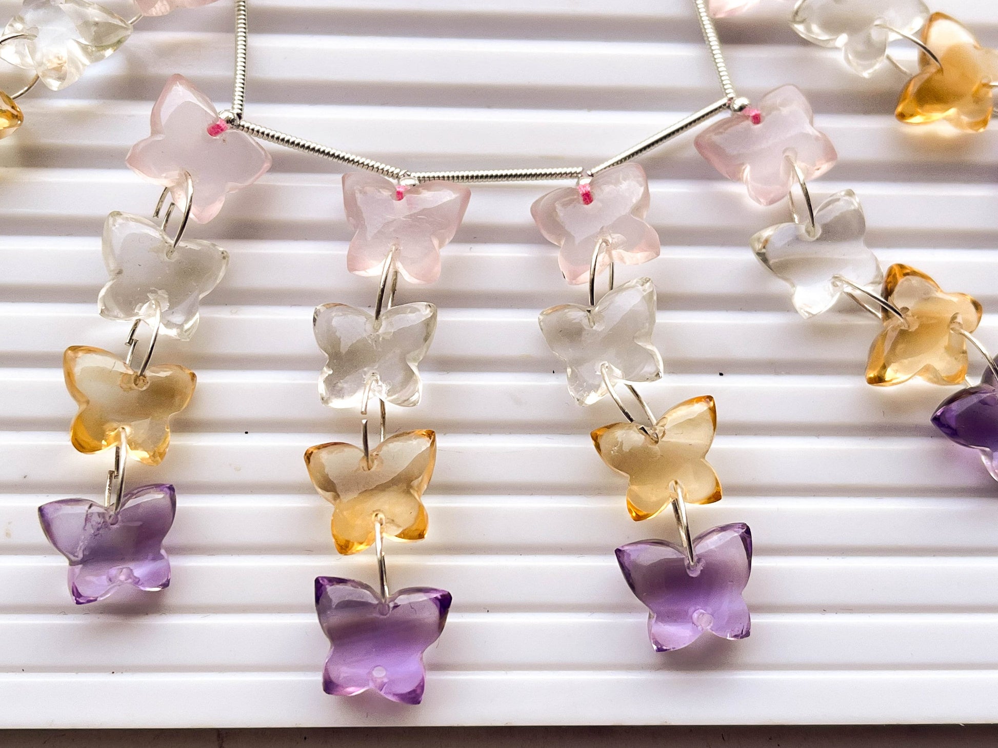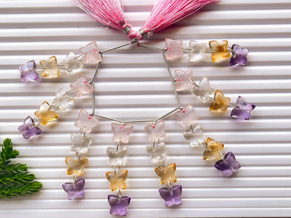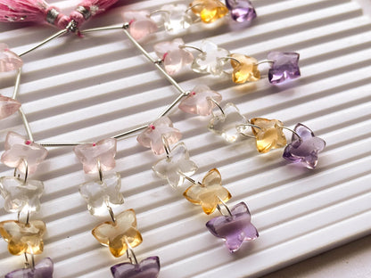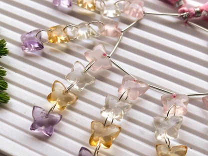 Mix Natural Gemstones Butterfly Shape Double Drill Beads, Butterfly Carved Beads, Butterfly Beads, 925 Silver, 32 Pieces