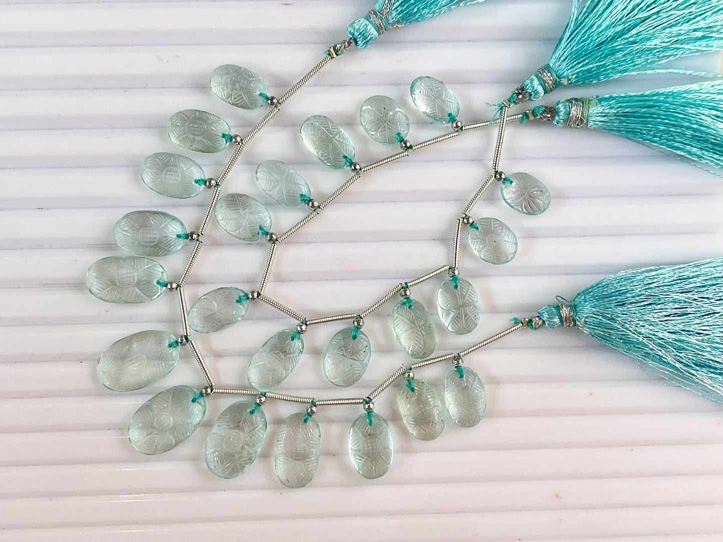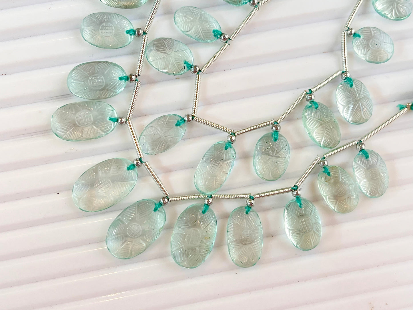 Natural Aquamarine Carved Oval shape beads, Aquamarine carving beads, Aquamarine oval shape beads, Aquamarine Beads, Aquamarine carved beads