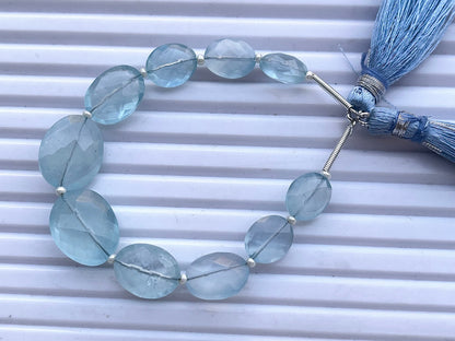 Natural Aquamarine Oval Shape faceted beads, 10 Pieces
