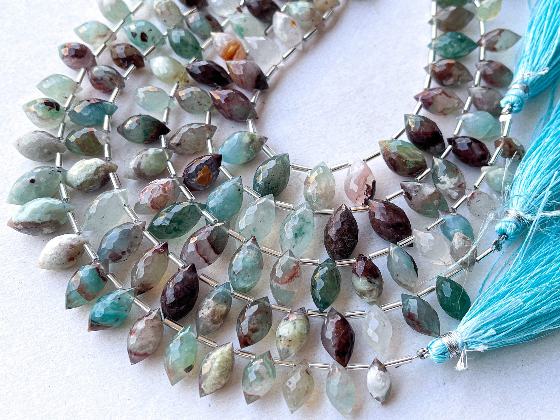 Natural Aquaplase faceted olive shape drops, Aquaplase drops, Aquaplase teardrops, Aquaplase beads for jewelry making, 22 Pieces