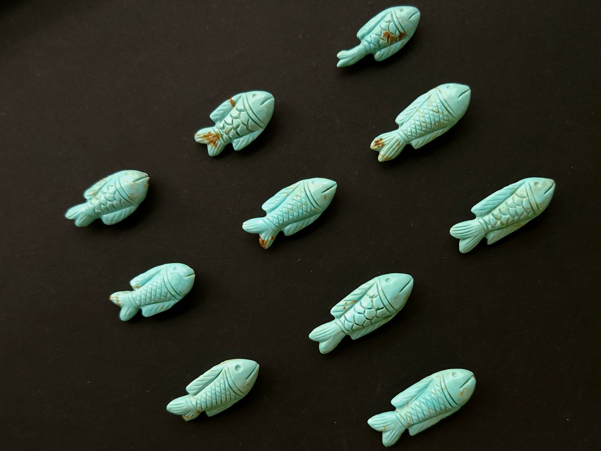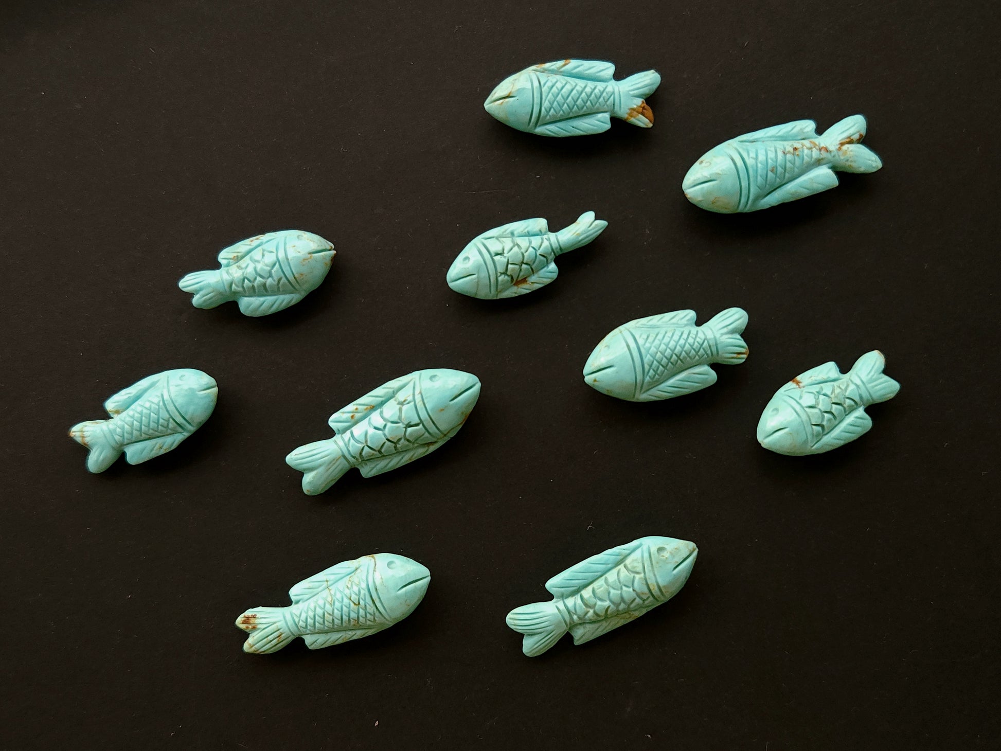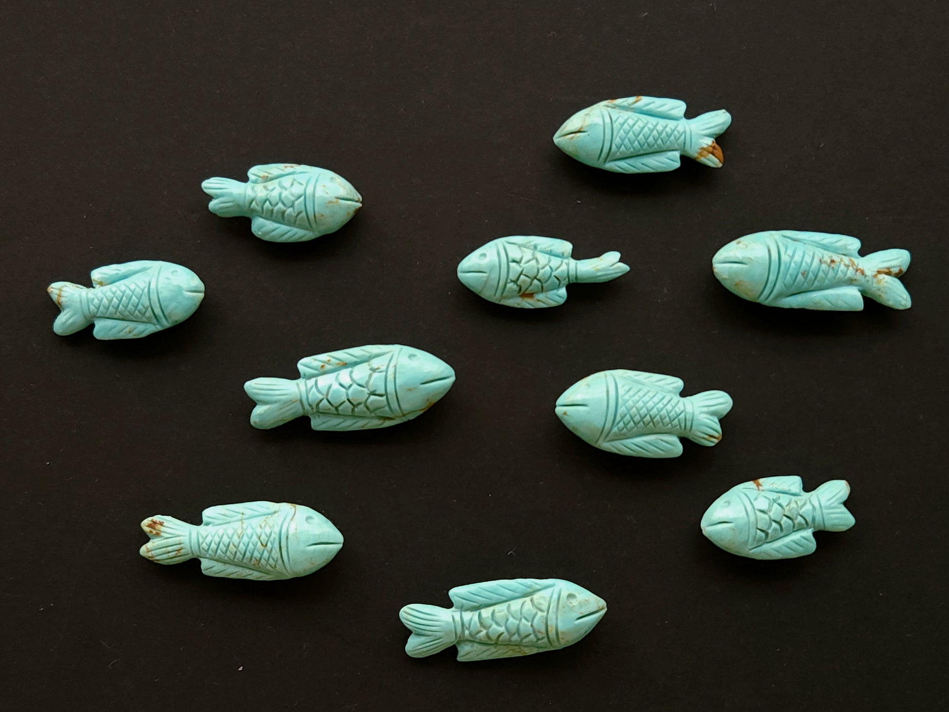 Beautiful Natural Arizona Turquoise Hand-Carved Fish crafted from genuine Arizona turquoise gemstone, showcasing stunning sky-blue to greenish-blue tones with natural matrix patterns that highlight its authenticity and rare beauty. The detailed fish carving symbolizes prosperity, protection, and good fortune, making it meaningful as well as visually striking.