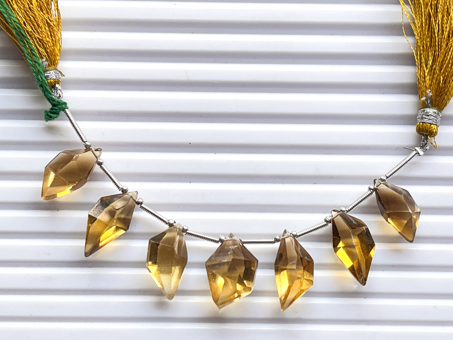 Natural Beer Quartz Faceted Spindle shape beads, Natural Beer Quartz Beads, Beer Quartz Briolette Beads, 9x18mm to 12x19mm, 7 Pieces