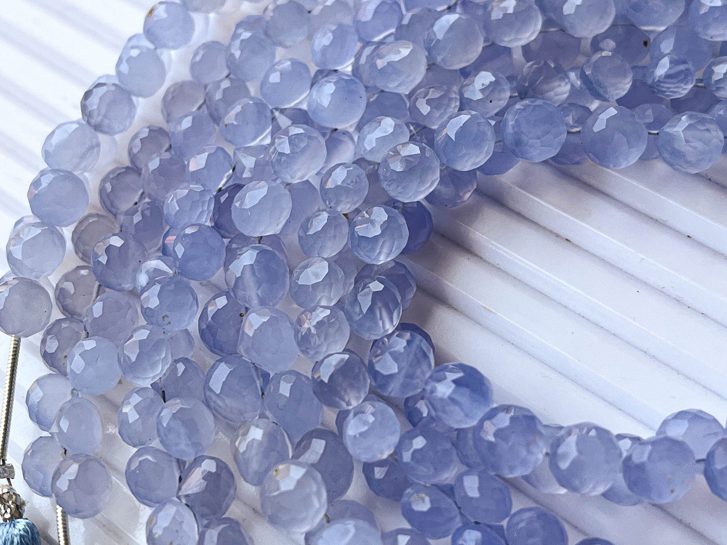 Natural Blue Chalcedony Micro faceted Onion shape Drops, Blue Chalcedony gemstone, Blue Chalcedony teardrops, Blue Chalcedony drops