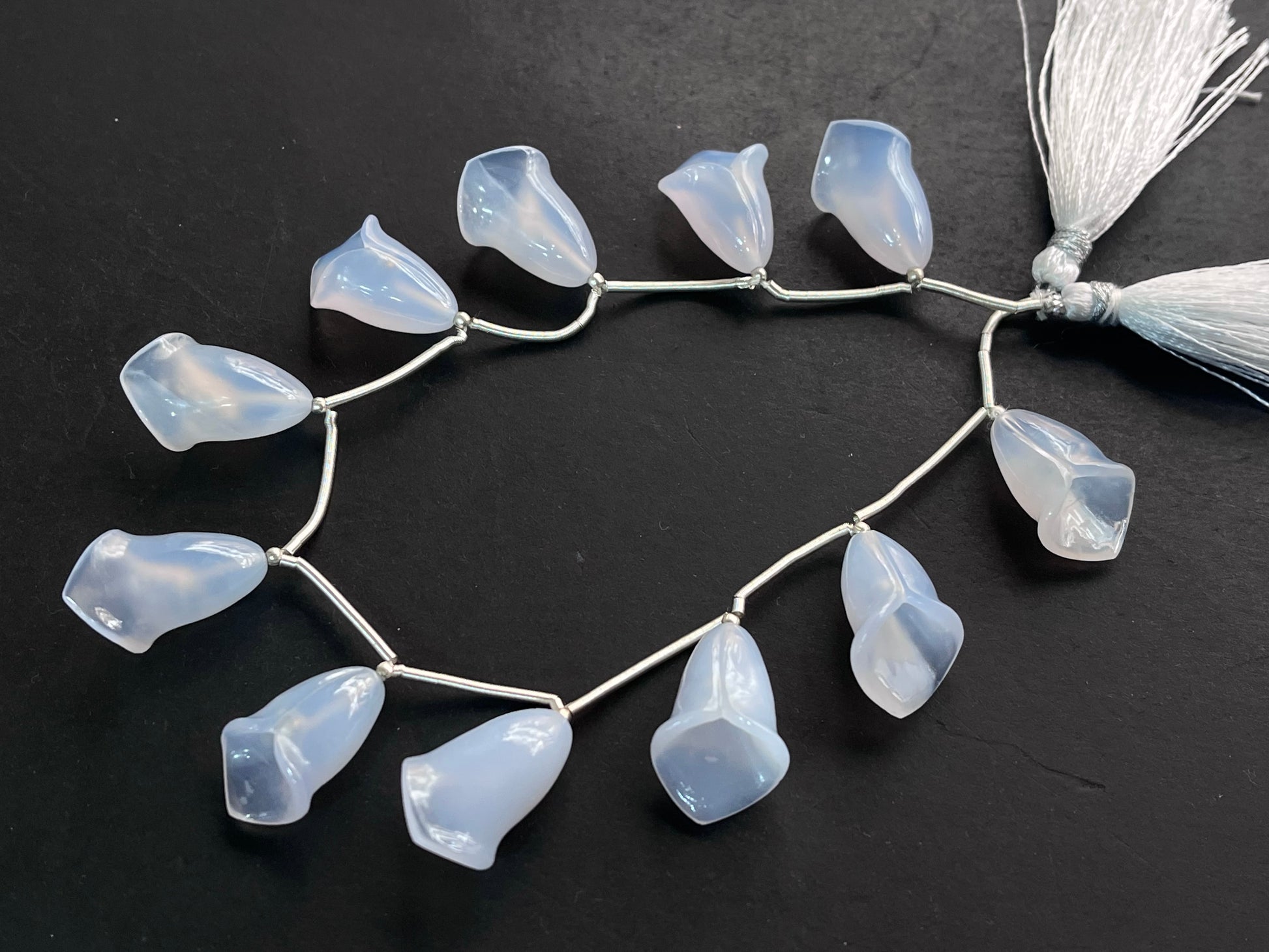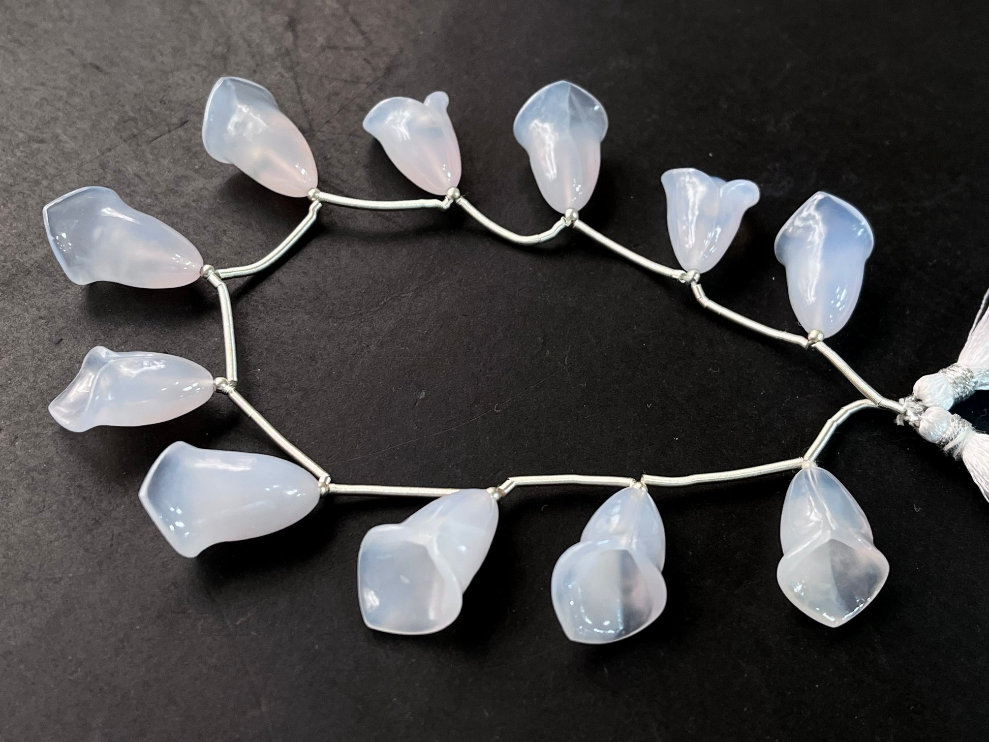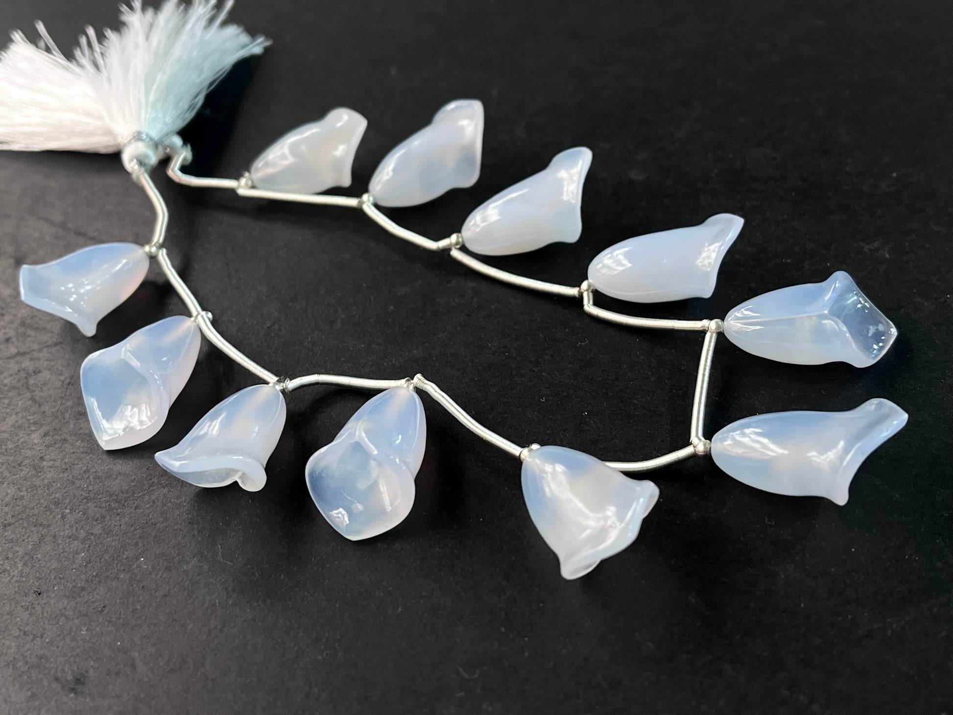 Natural Chalcedony Tulip Flower carving Beads
