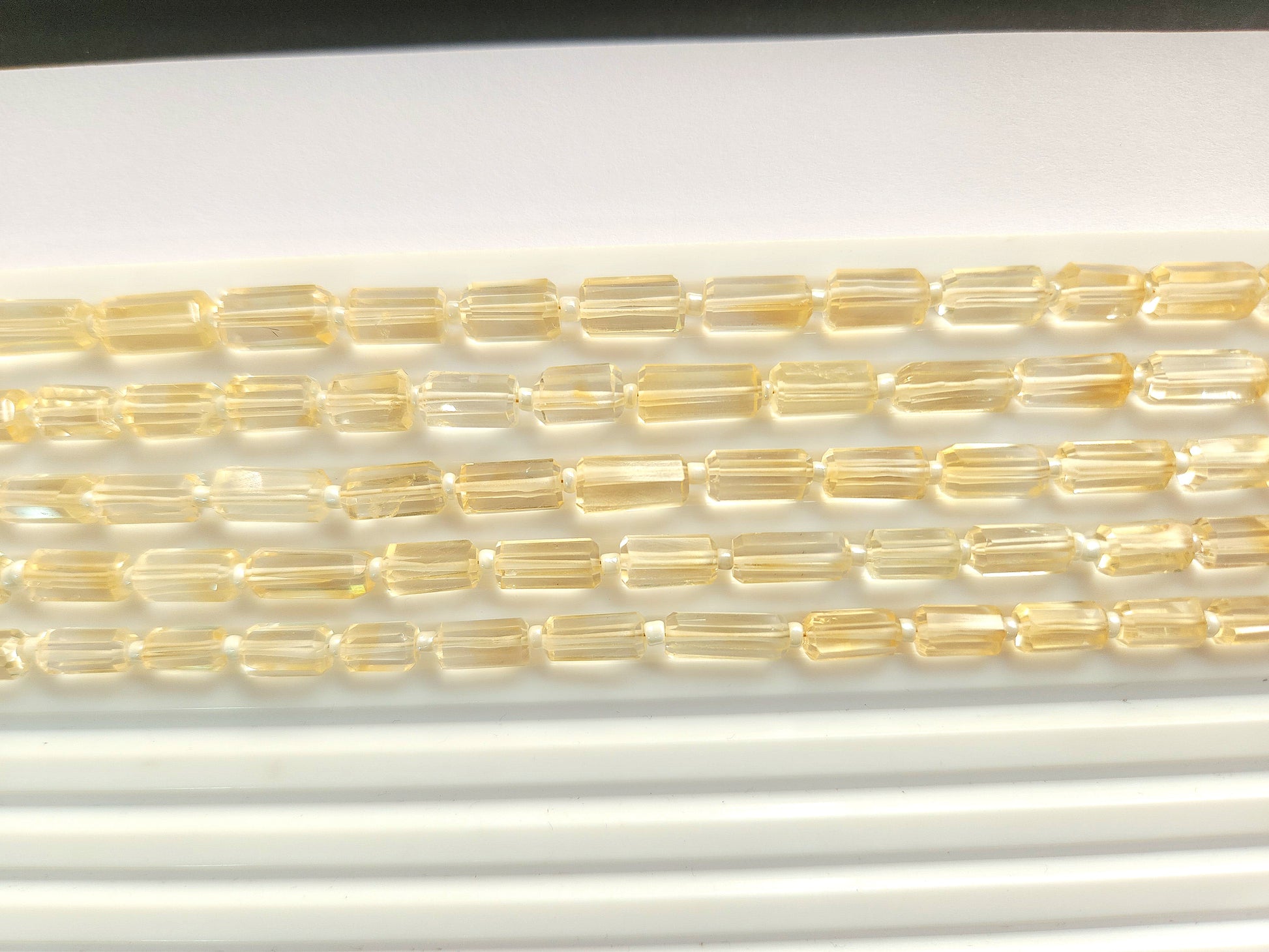 Natural Citrine Faceted Cylindrical Gemstone Beads
