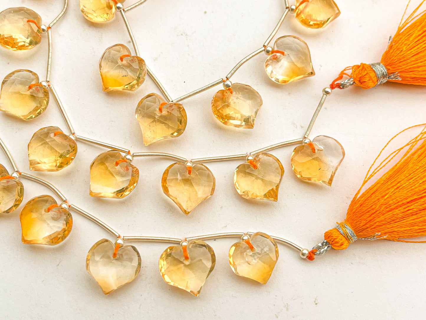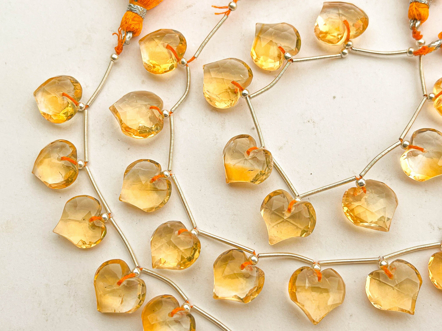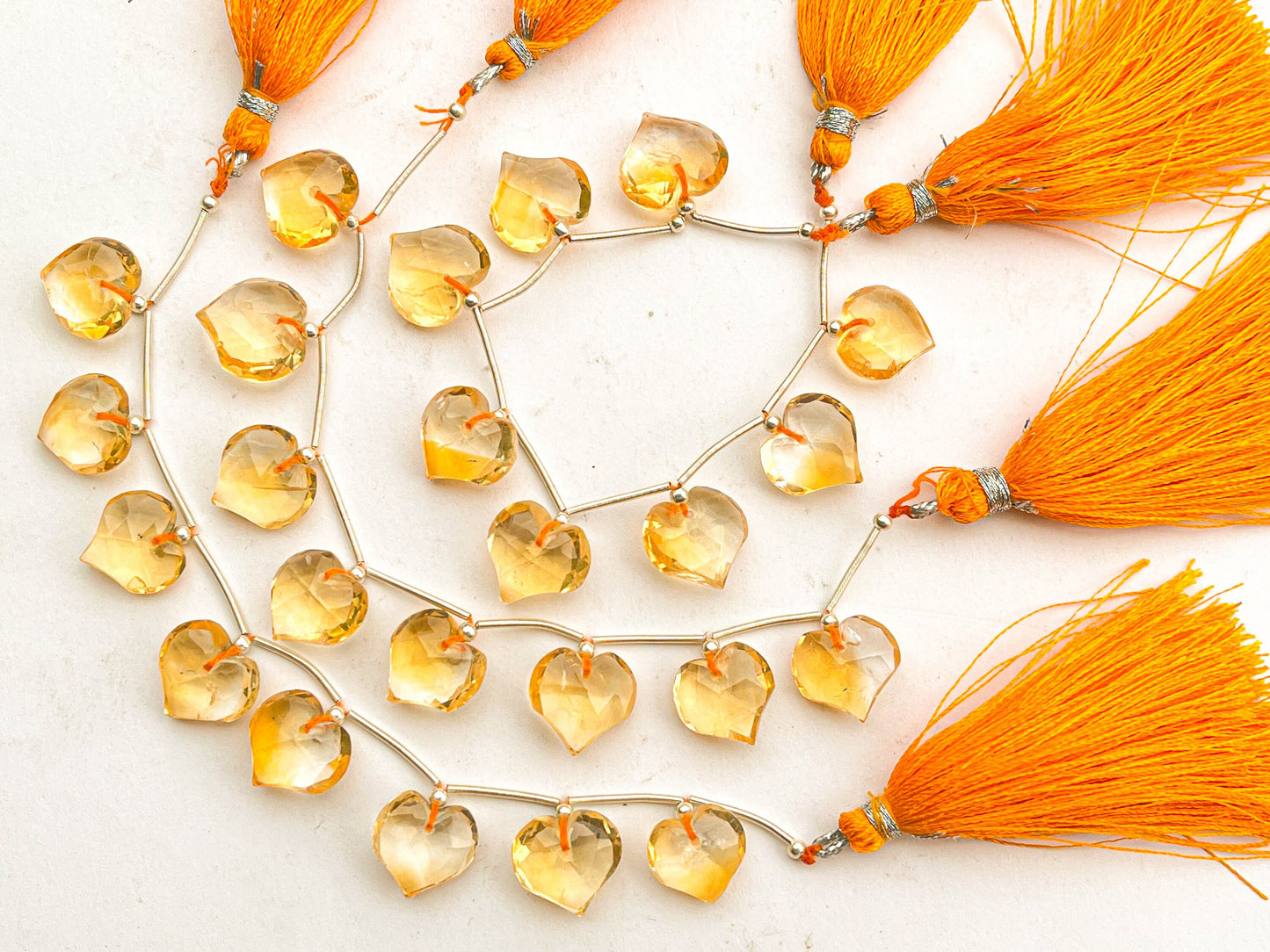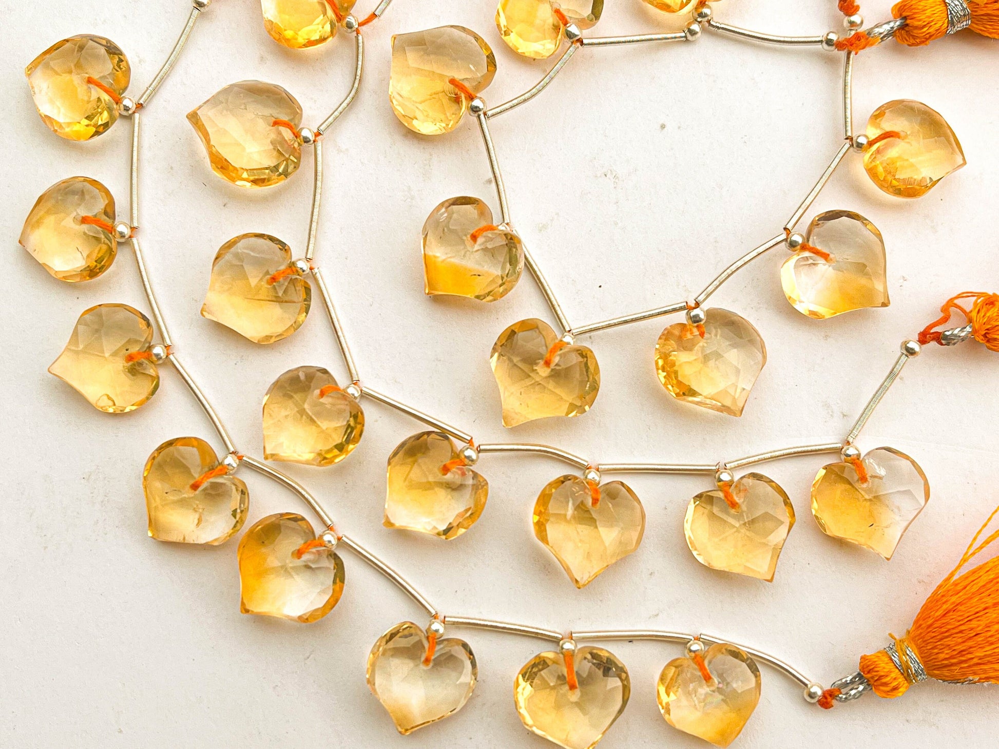 Natural Citrine Faceted Heart Shape Briolette Beads, Citrine Heart Shape Beads, Citrine Beads, Natural Citrine Gemstone, 13x13mm, 8 Pieces