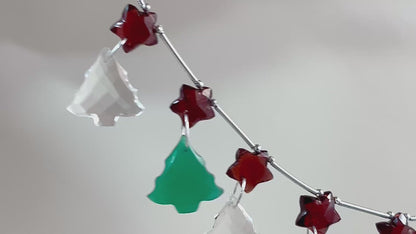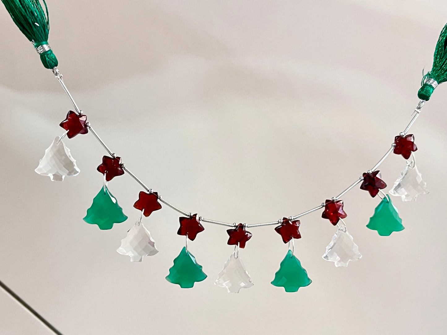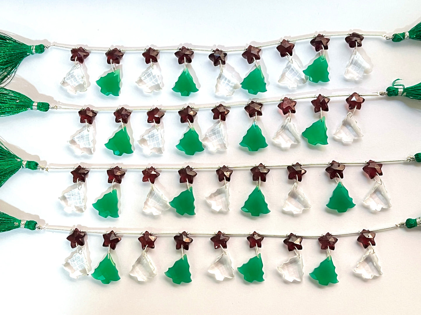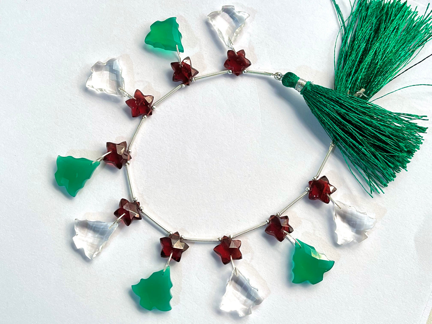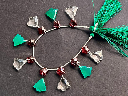 Natural Crystal and Green Onyx Christmas tree shape briolette with Red garnet faceted Star shape double drill beads for jewelry making