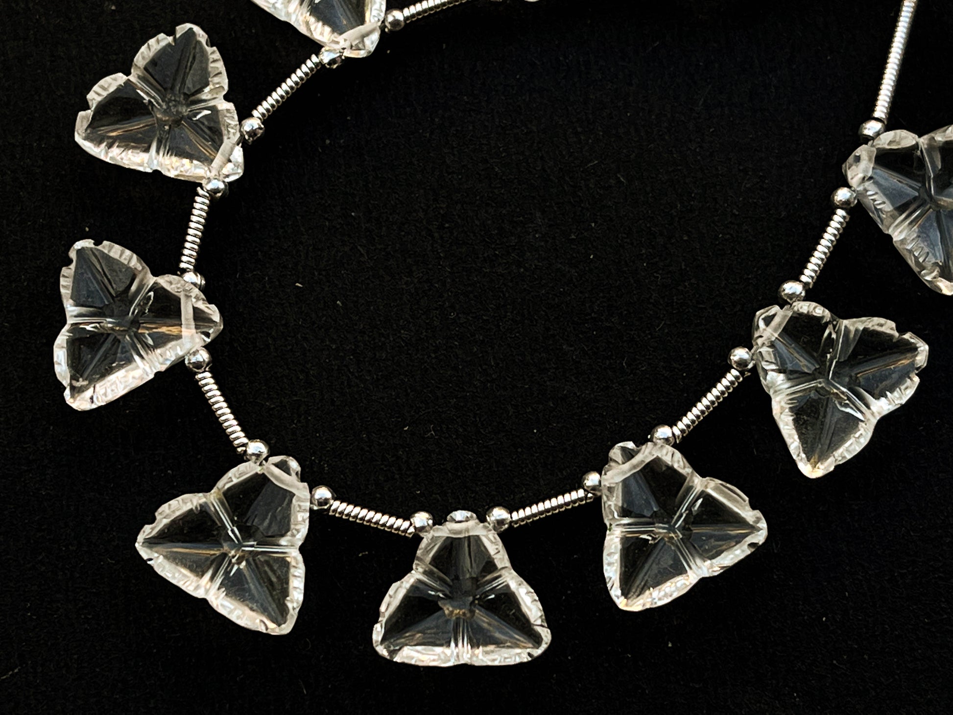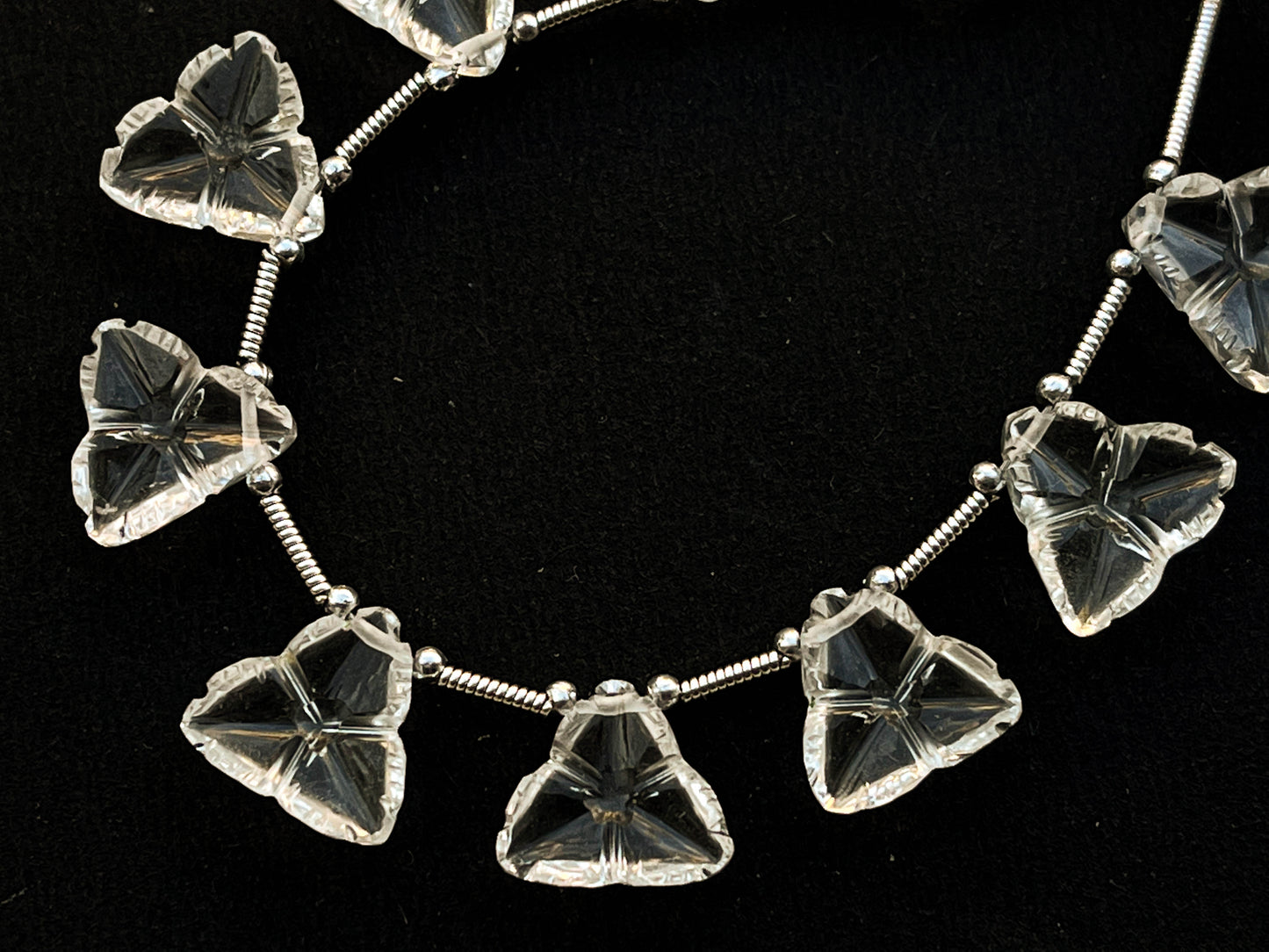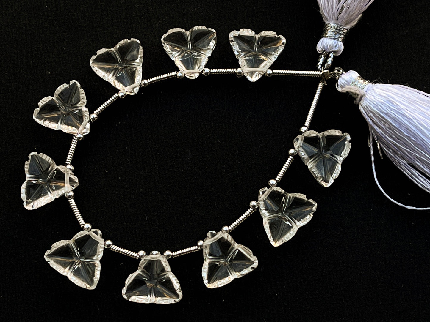 Crystal Quartz Flower Carving Beads, 10 Pieces | 11x11mm