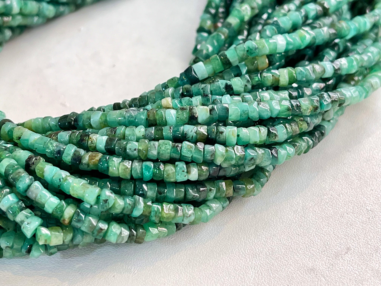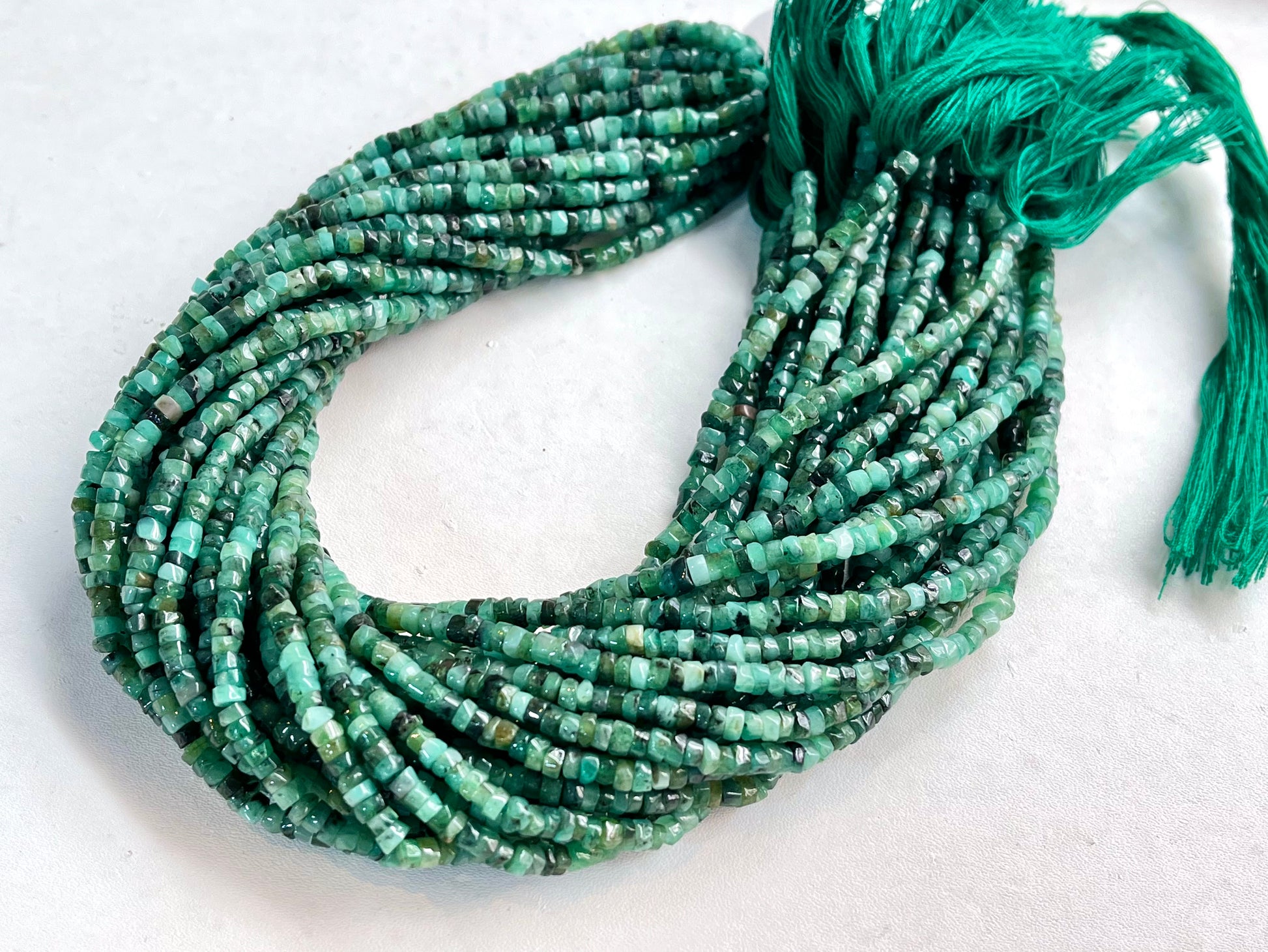 16 Inch Natural Emerald faceted Heishi Shape Beads, Emerald Gemstone Beads, Emerald Beads for jewelry making, Emerald Heishi, 12 Inch, 4mm