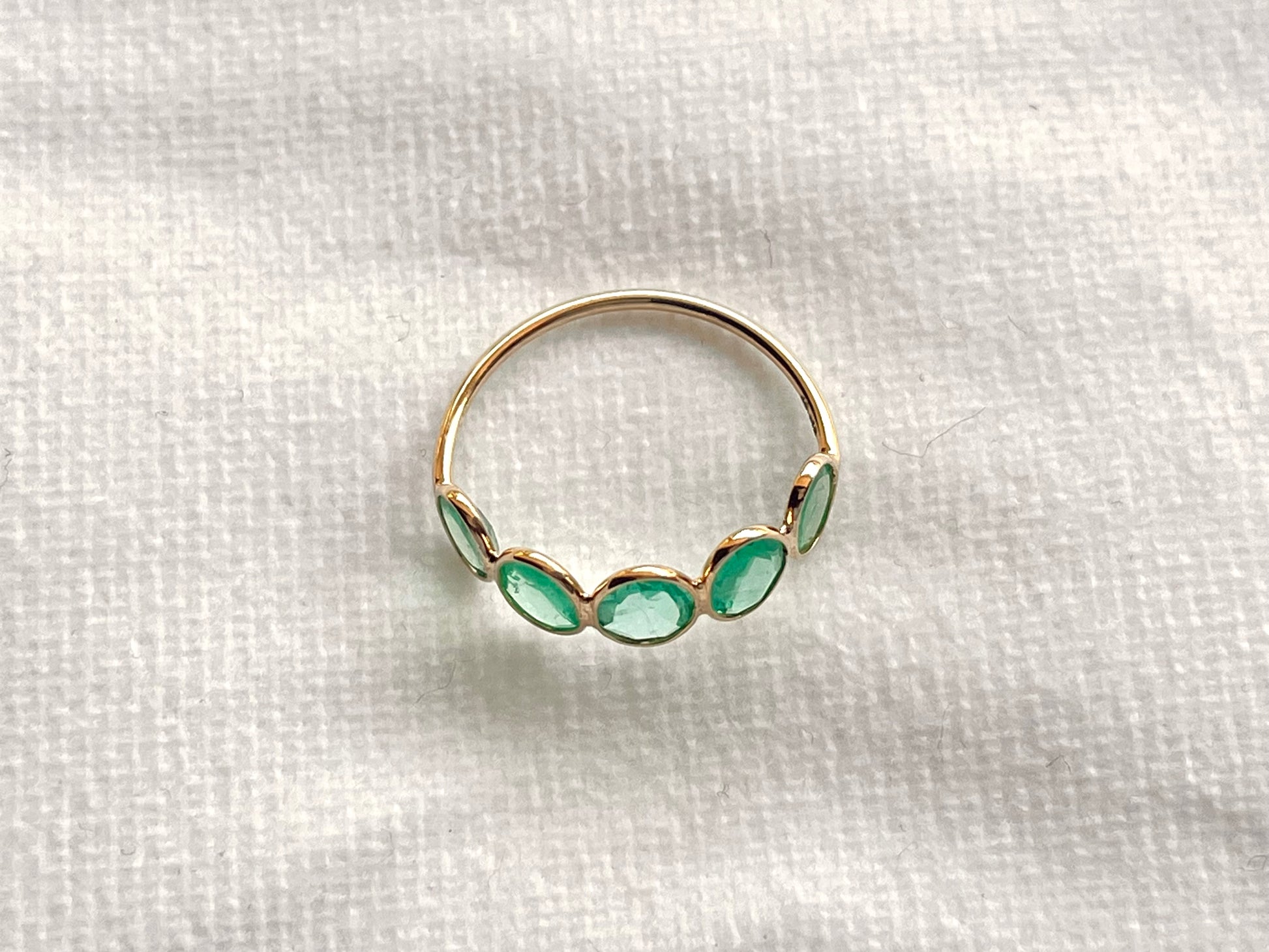 The rich green tone of the natural emerald contrasts beautifully with the warmth of gold, making it ideal for both minimal styling and stacking with other rings. Designed in US size 6.5, this ring combines simplicity with fine craftsmanship.