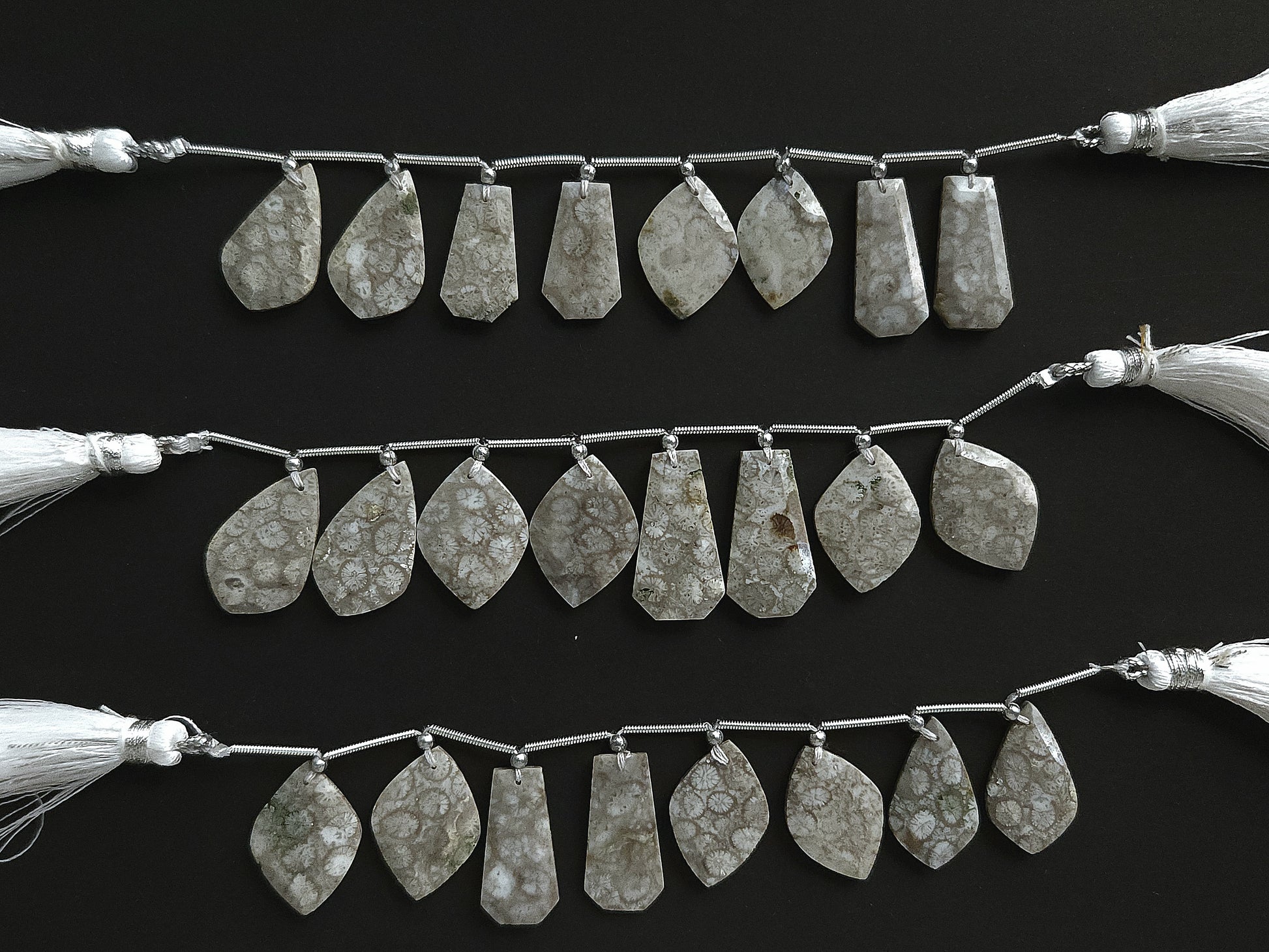 Add unique textures to your creations with these Natural Fossil Coral Jasper Fancy Crown Cut Gemstone Pairs. Each piece showcases intricate patterns and crown cut faceting, making them ideal for earrings, pendants, and artisan jewelry designs.