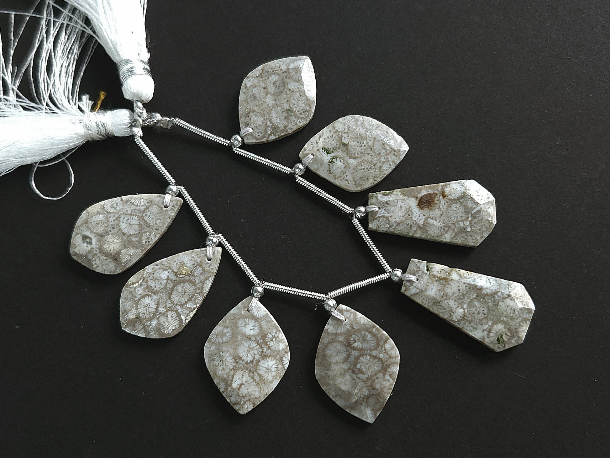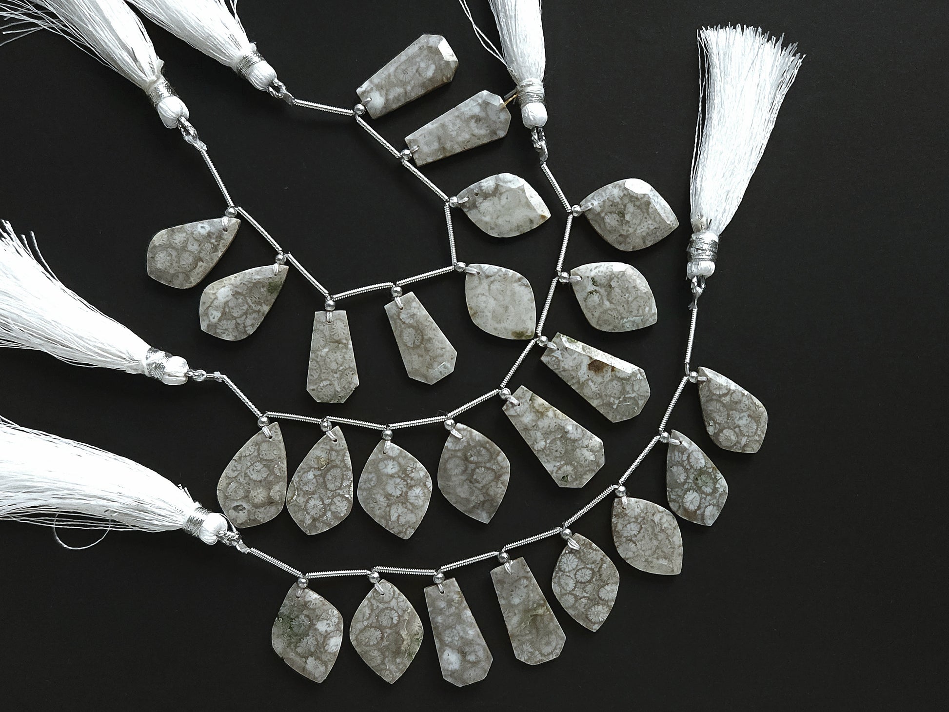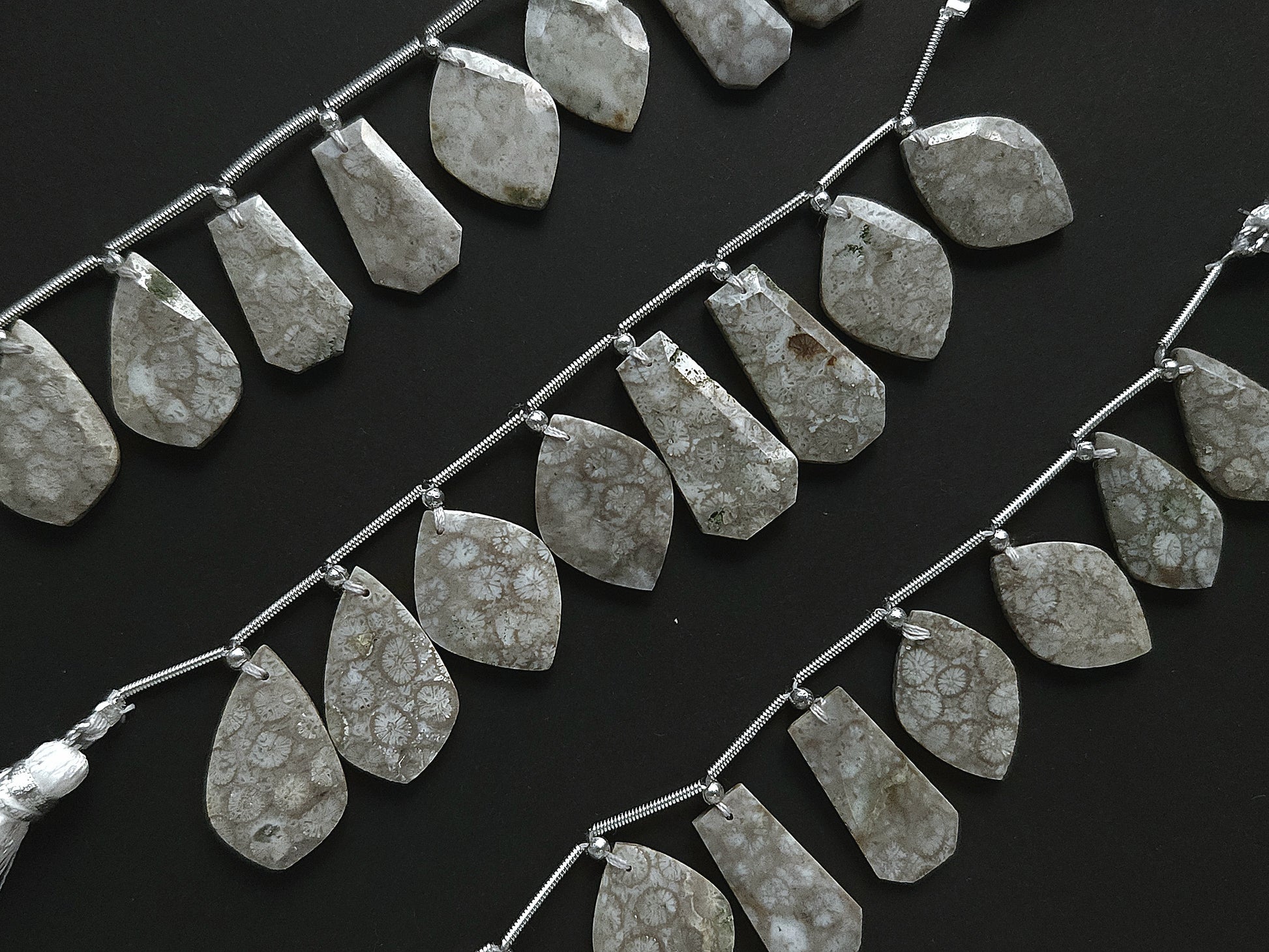Add unique textures to your creations with these Natural Fossil Coral Jasper Fancy Crown Cut Gemstone Pairs. Each piece showcases intricate patterns and crown cut faceting, making them ideal for earrings, pendants, and artisan jewelry designs.
