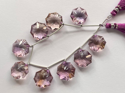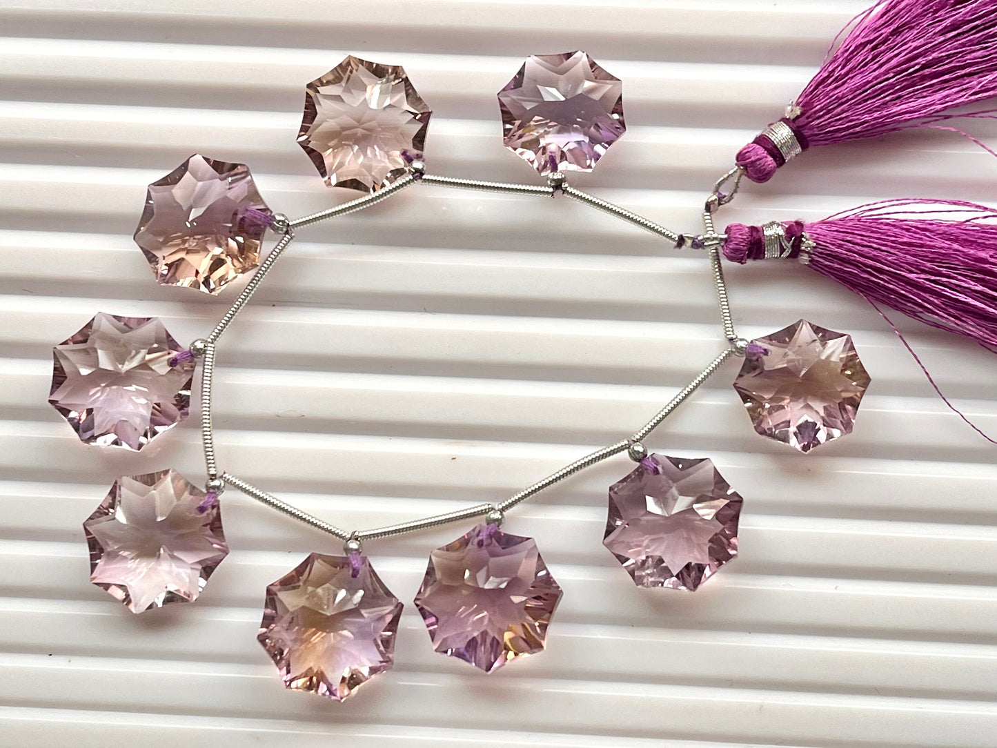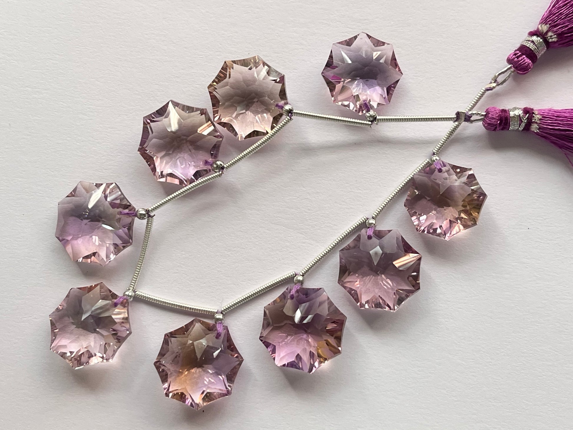Natural Ametrine Rosette Concave Cut beads, Natural Ametrine Gemstone, Ametrine concave cut beads, Ametrine Beads, 9 Pieces, 15mm to 17mm