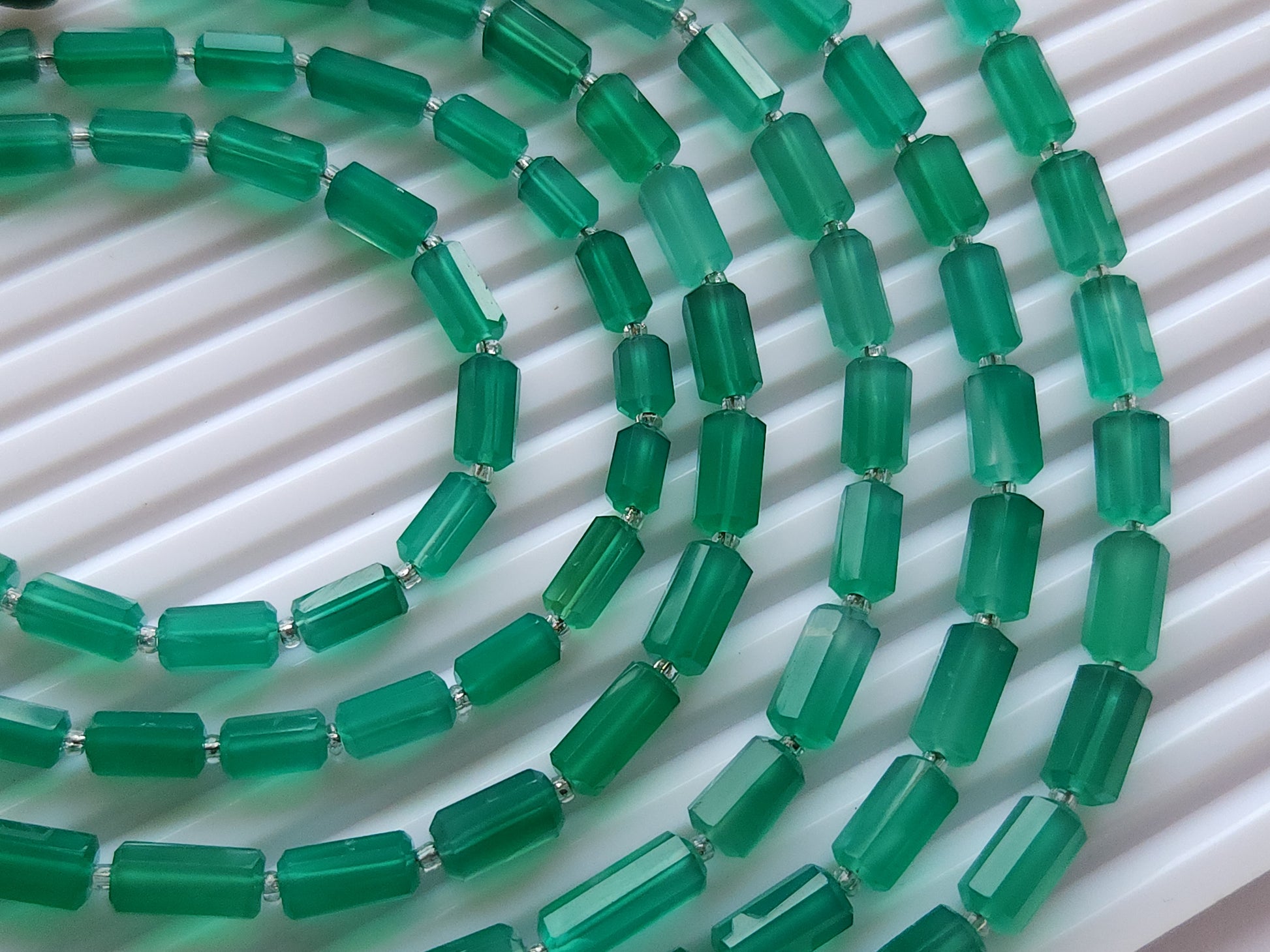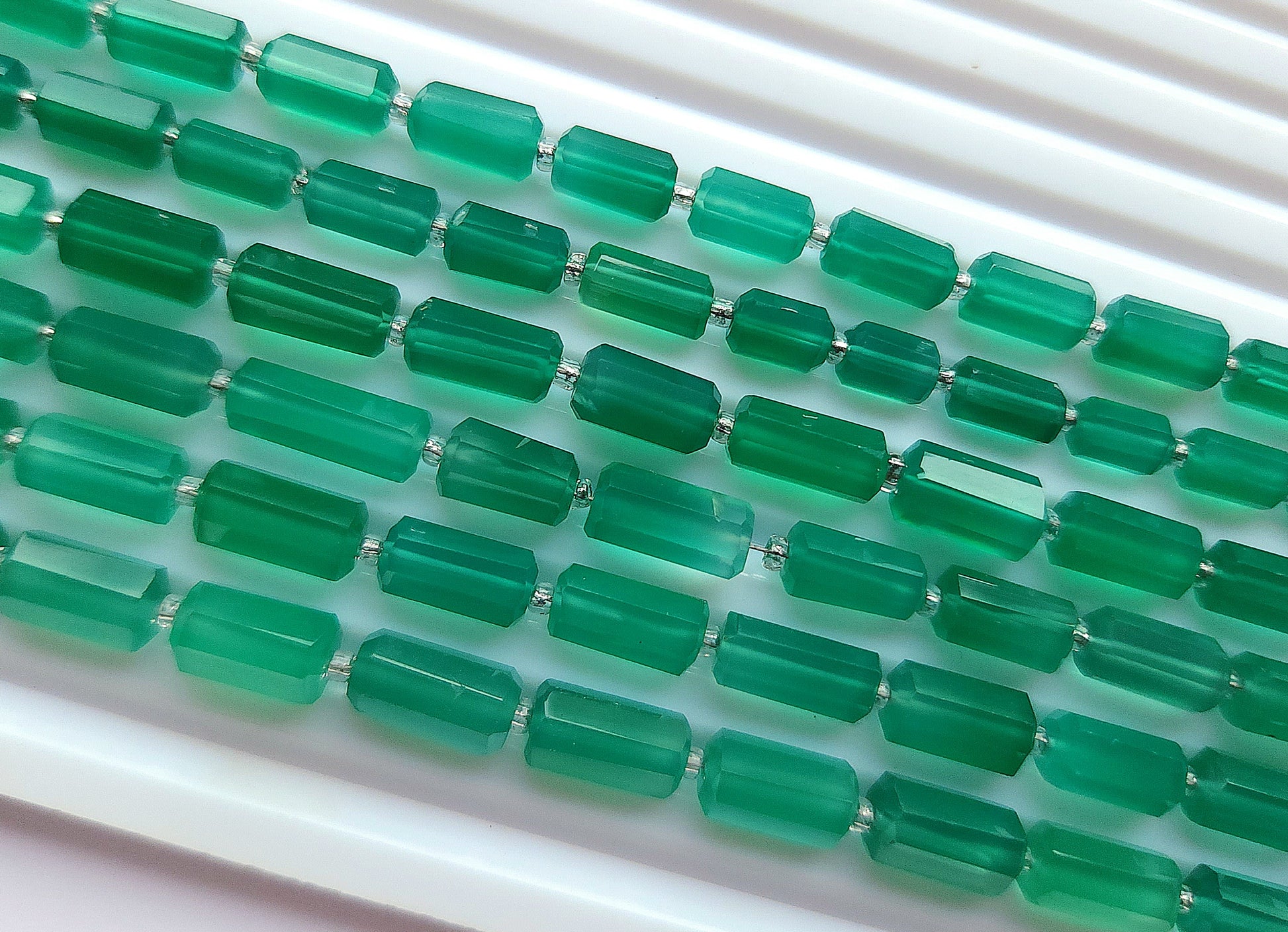 Natural Green Onyx Faceted Cylindrical Shape Beads