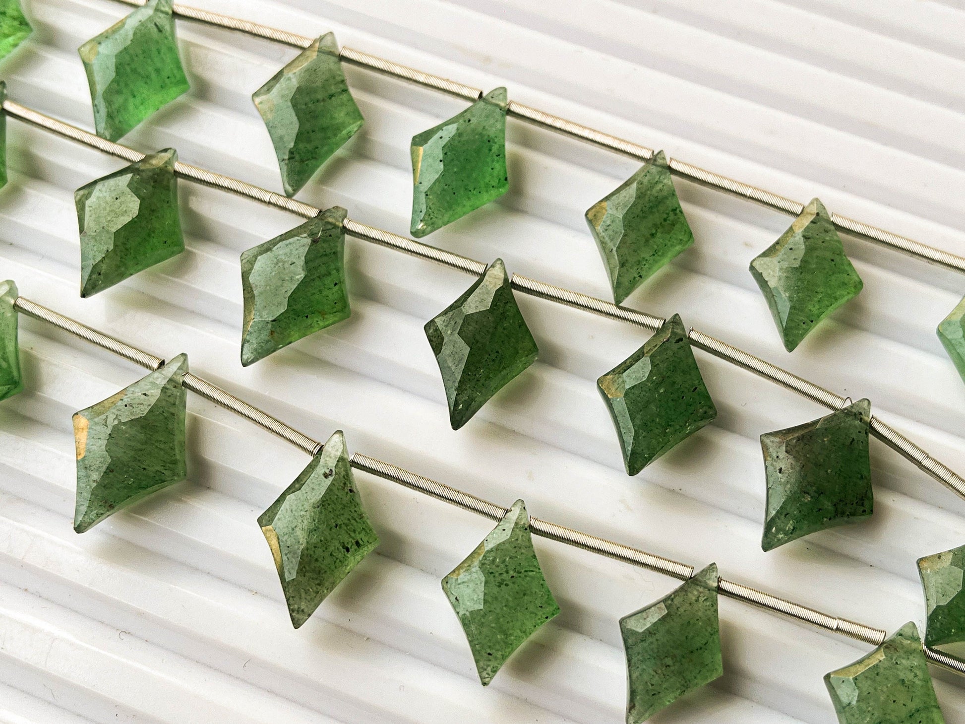 Green Aventurine fancy diamond shape faceted briolette beads, Green Strawberry beads for jewelry making, 10 Pieces