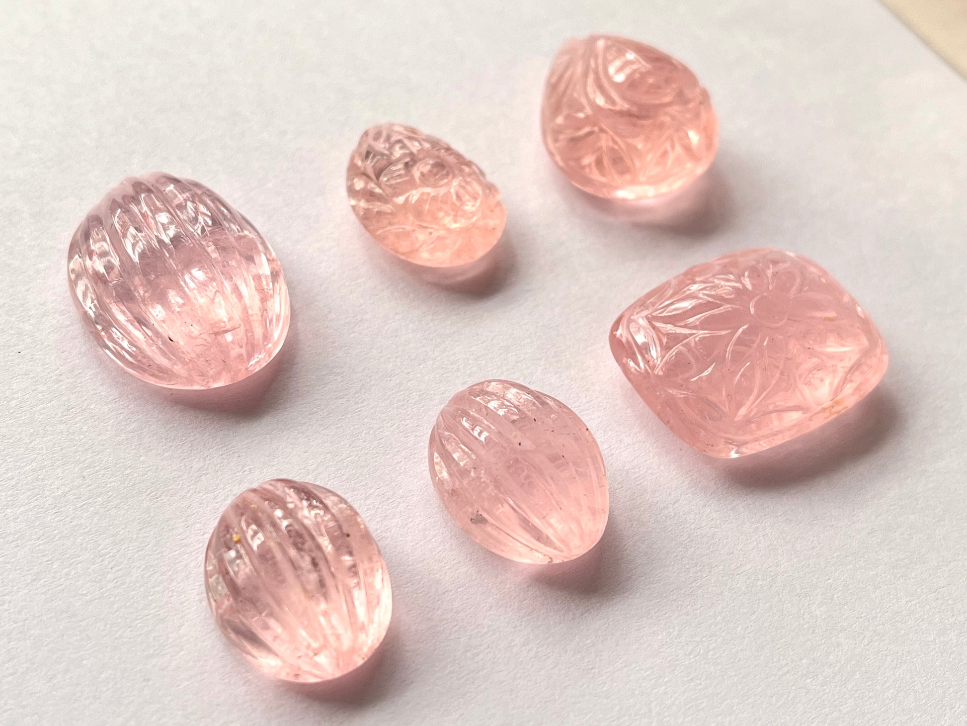 Natural Hand carved Morganite gemstone carved cab, Morganite carving for pendant, ring or jewelry making, Morganite carved gemstone