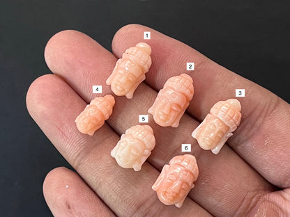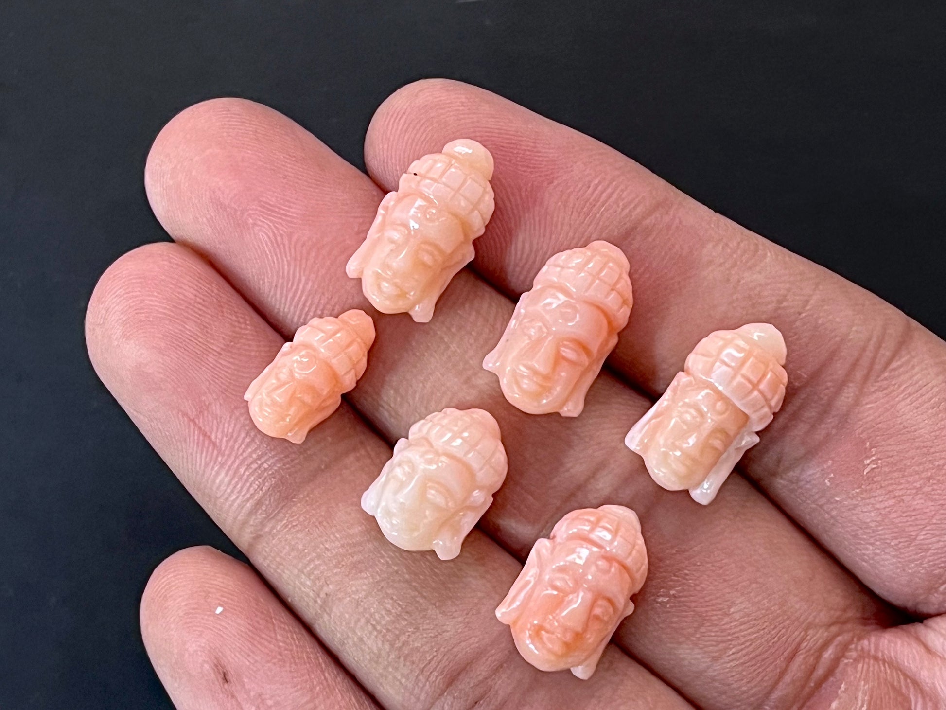 Natural Japanese Pink Coral Hand carved Buddha face, Coral Charm, Buddha Pendant, Carved Coral for Pendant making, Buddha Coral pendant