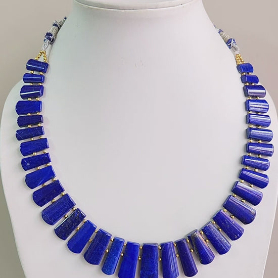 Natural Lapis Lazuli Gemstone Bib Necklace – Handmade Cleopatra Style Choker Jewelry
